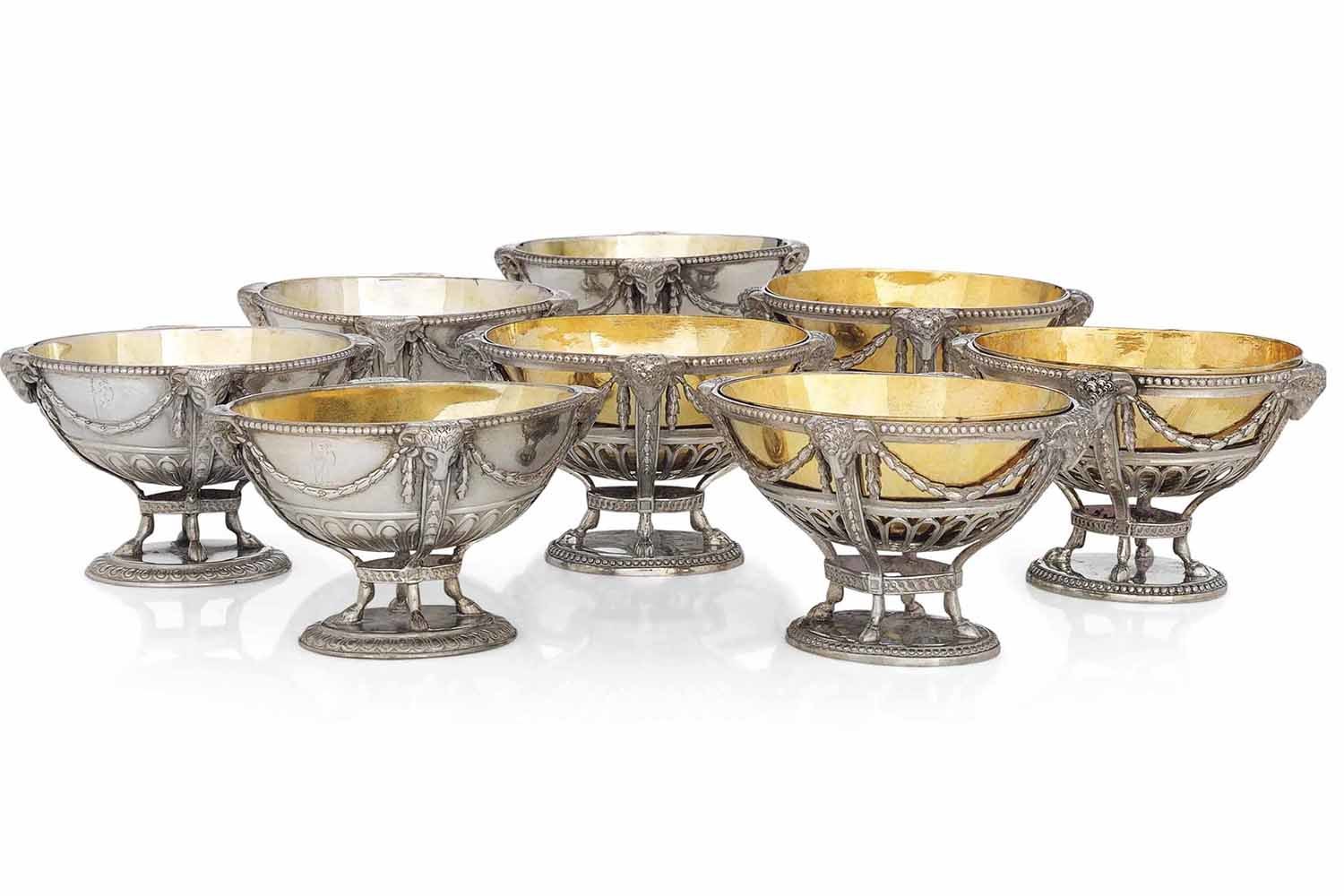 Естественно, ранние шедевры, столь редко попадающие на антикварный рынок, и оцениваются чрезвычайно высоко. Например, солонка времен короля Якова I в форме колокола, созданная в 1607 году и когда-то принадлежавшая американскому медиамагнату Рэндольфу Уильяму Херсту, была продана в 2005 году с торгов Christie’s за $252 000, а сейчас, по словам Тимо Купмана из компании Koopman Rare Art, может стоить более $500 000.