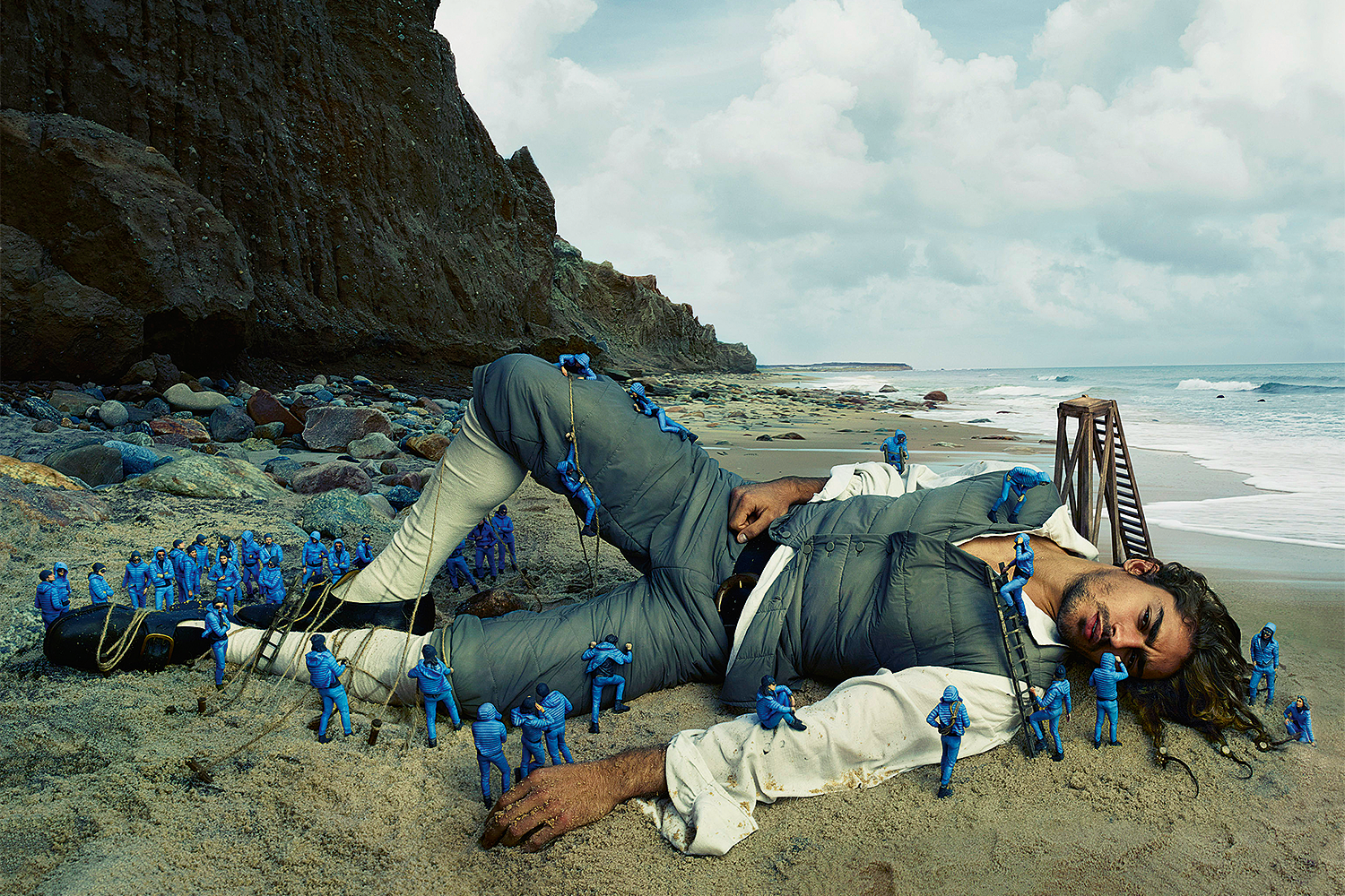 Идею сказок решили продолжить в 2016-м. На сей раз источником вдохновения послужил роман Джонатана Свифта «Путешествия Гулливера», впервые напечатанный в 1726 году. Гулливер, одетый в версии Руффини в серые бриджи и пуховый жилет, терпит крушение и оказывается на холодном песке неизвестной страны, где чувствует, что промахнулся с масштабом: аборигены-лилипуты оказываются в десять раз меньше него. Кто-то, возможно, подумает, что фотографии — результат фотомонтажа, но это не так. Достаточно посмотреть короткое видео со съемочной площадки, как станет ясно: все лилипуты (а всего их в кадре нескольких десятков) были изготовлены индивидуально и одеты в пуховики Longue Saison цвета электрик, после чего их расставили вокруг Гулливера.