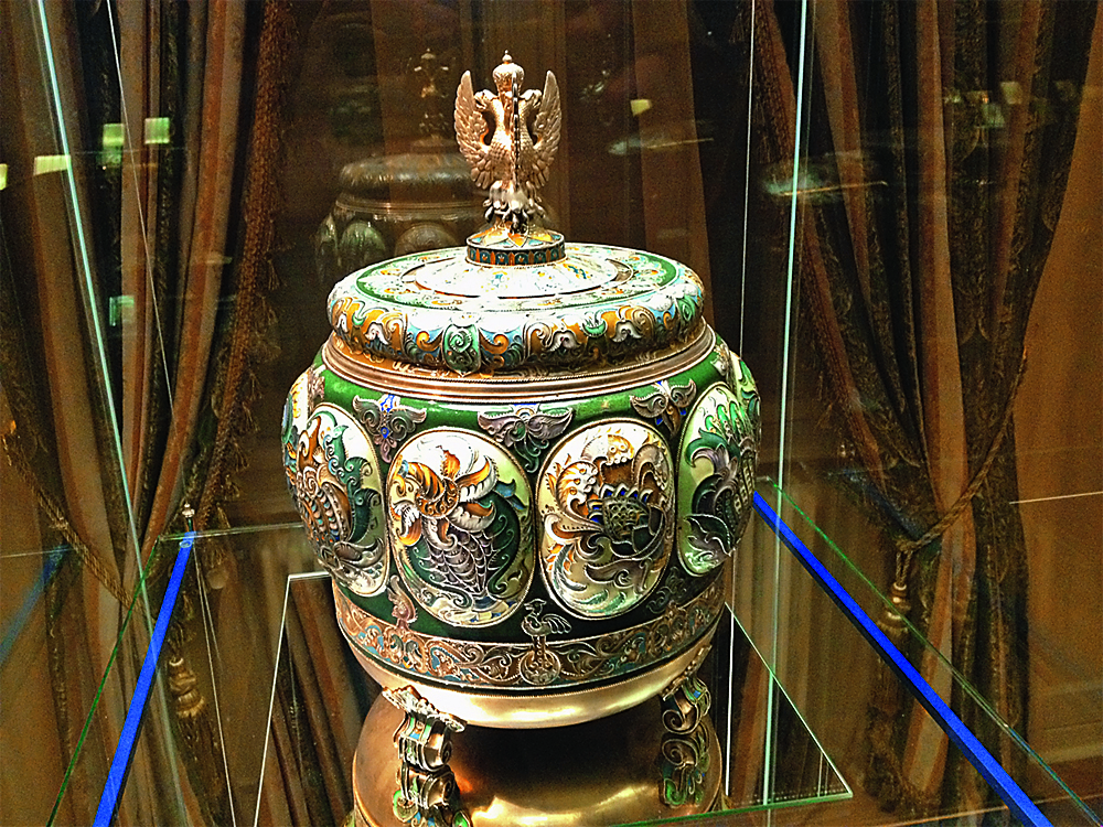 В феврале 2014 года в музее был выставлен уникальный сервиз, изготовленный в Англии по заказу махараджи Патиалы, одного из самых богатых и влиятельных индийских правителей начала ХХ века. К Фаберже он отношения не имеет, просто очень интересный артефакт. «Это самый большой в мире серебряный сервиз, — рассказывает Иванов. — Он рассчитан на 180 персон и включает 1500 предметов весом около 700 кг. Махараджа заказал его в конце 1915 — начале 1916 года к визиту в Индию принца Уэльского, будущего короля Эдуарда VIII, и делали его четыре года. После смерти махараджи сервиз перевезли в Англию, где мы его и купили на аукционе Christie’s за 2,1 млн фунтов».
