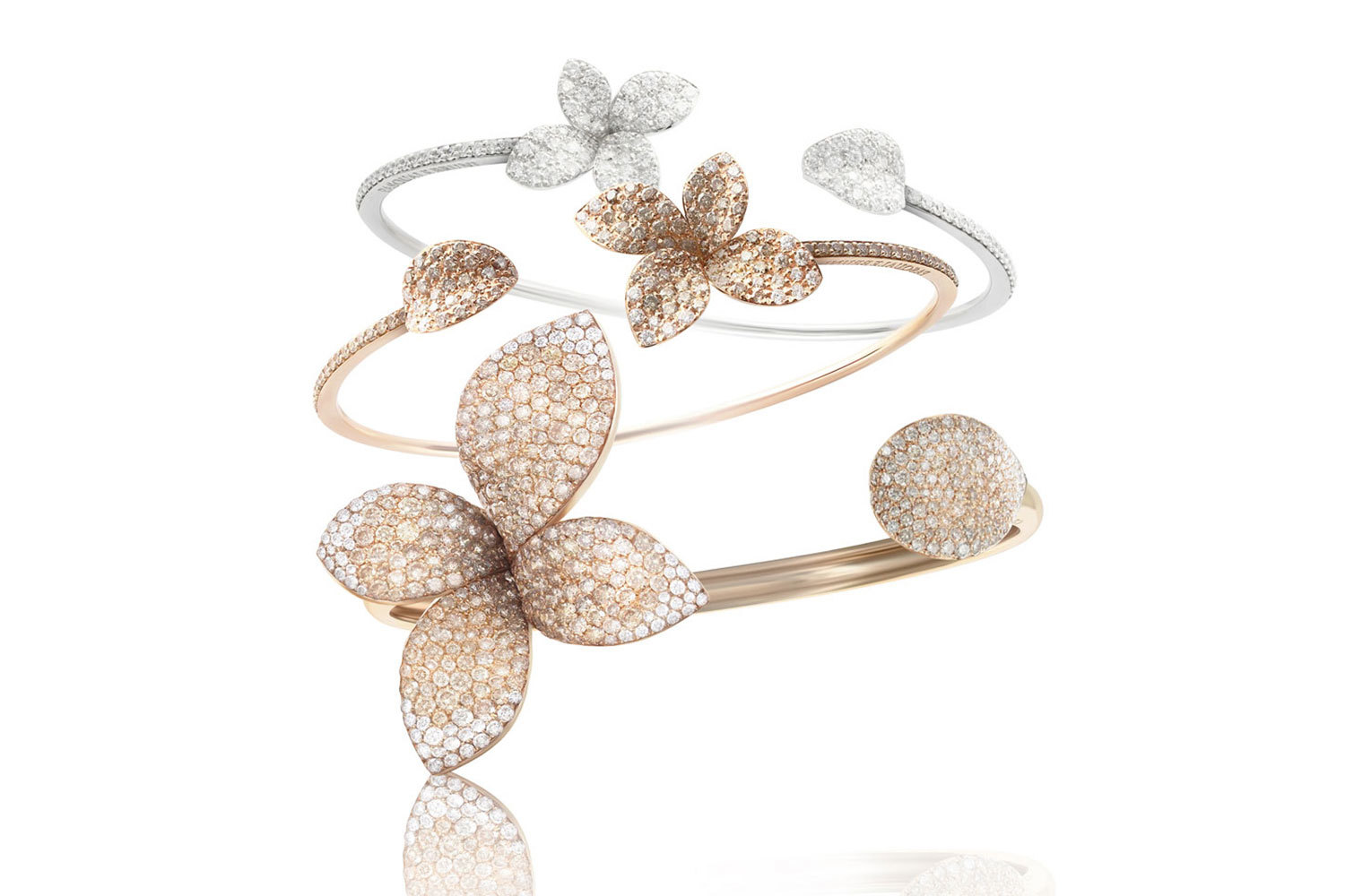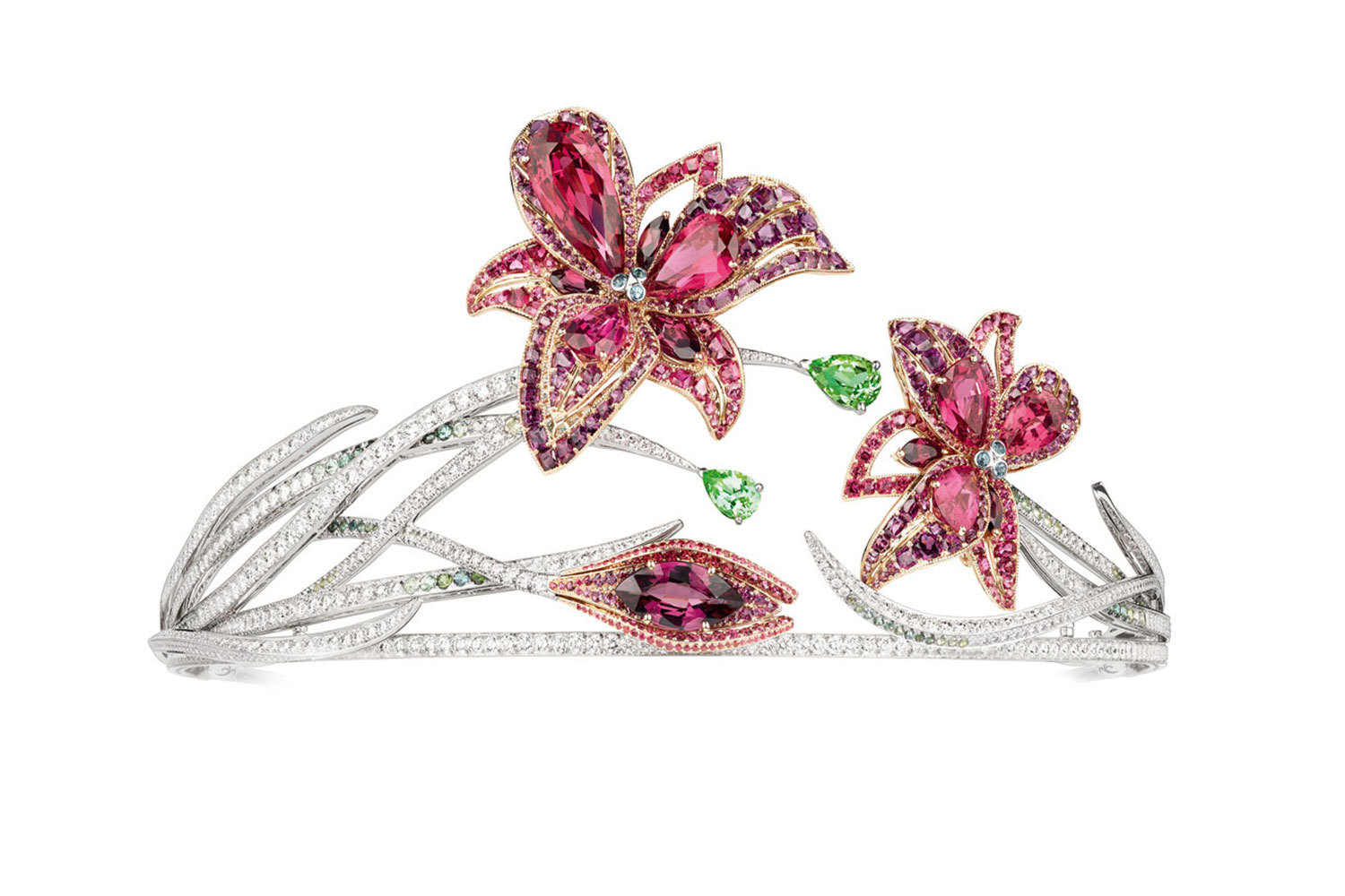 У крашения в виде нежных бутонов, распустившихся цветов, пышных соцветий и миниатюрных букетиков в истории ювелирного искусства – сюжет далеко не самый древний, но определенно самый разнообразный. Вариаций и мотивов цветов в драгоценных материалах за последние два века было создано столь же много, как и их разновидностей в мире настоящей флоры: хватило бы на целую энциклопедию, а то и не одну. Только из ювелирных образцов последнего десятилетия можно было бы составить увесистый справочник по видам цветов, стилям их подачи и декоративным техникам, в которых те были исполнены. А уж если начать отсчет с середины XIX века, когда в ювелирную моду вошел стиль натурализм и в ней стали «всходить» первые украшения – цветы, а затем объять стиль ар-нуво, который расширил диапазон этой самой флоры до всех мыслимых пределов, то выйдет целое собрание ювелирно-садоводческих сочинений.