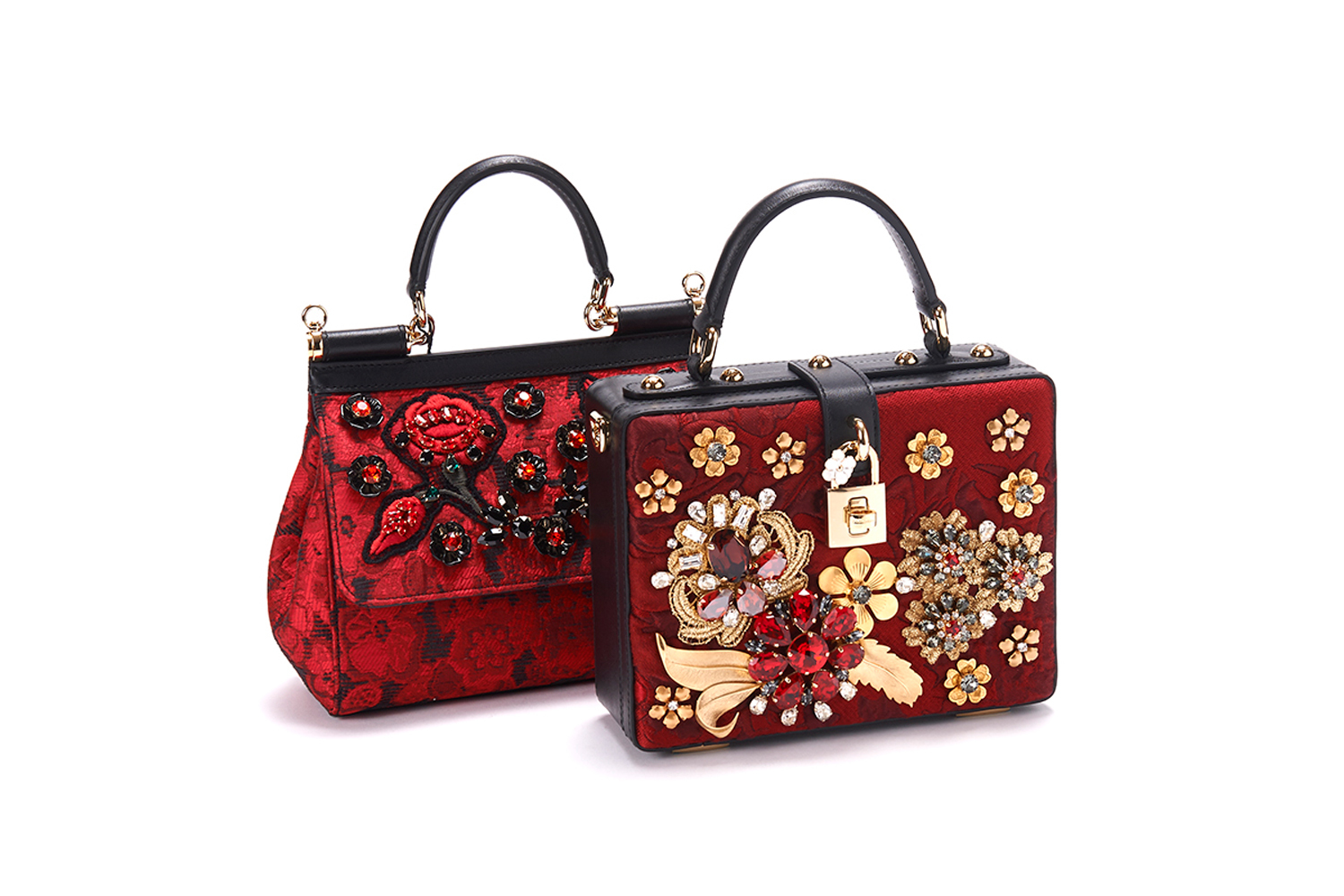 Лимитированные модели сумок Sicily и Dolce Box, которые вошли в «московскую» капсульную коллекцию, выполнены из жаккардового материала, украшены бисером и кристаллами Swarovski, образующими цветочные узоры, которые мы обычно видим на жестяных подносах.