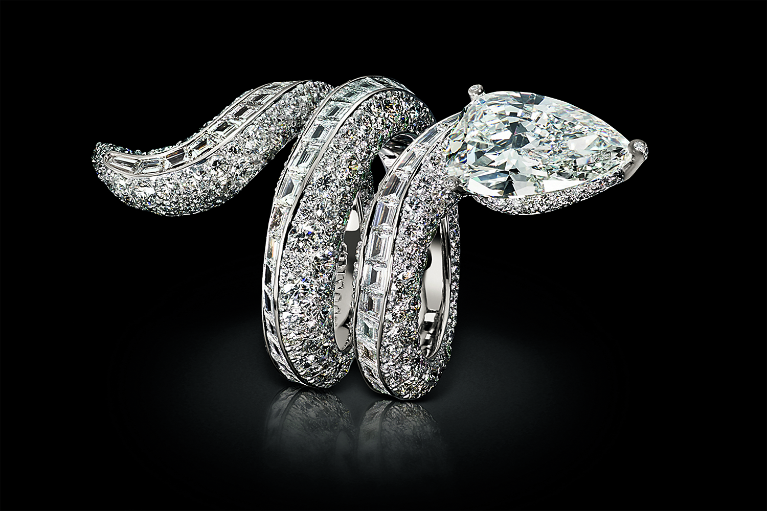 Я по-прежнему горой стою за цвет в драгоценных камнях, и в них во многом заключен наш фирменный стиль. Но появилась особенная история – заполучить в руки выдающиеся бриллианты да еще и участвовать в их судьбе, и я, разумеется, воспользовался этой возможностью. И поскольку теперь у меня появилась возможность выбирать первоклассные камни из первых рук, я решил начать делать то, чего не делал никогда, – обручальные кольца. И моя задача – сделать их непохожими на прочие, в стиле de Grisogono.