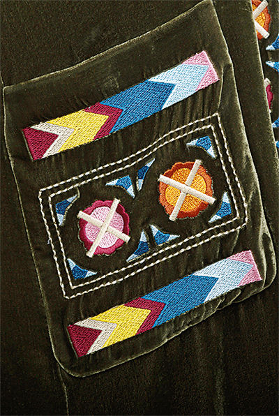 К тому же практически в каждой из двух десятков моделей, что сейчас составляют ассортимент Gourji, используется огромное количество ручного труда – вышивка, аппликация, отделка боа. А максимальное количество, в котором на данный момент отшивалась одна модель, – всего десять штук. Таким бестселлером стали зимние пальто-шинели из шерсти и кашемира с ручной вышивкой и отделкой натуральным мехом (тоже не российским!) – на них Семенова до сих пор принимает заказы. И в грядущем зимнем сезоне представит новые вариации шинелей и пальто с иными принтами, не только русскими, но и восточными.