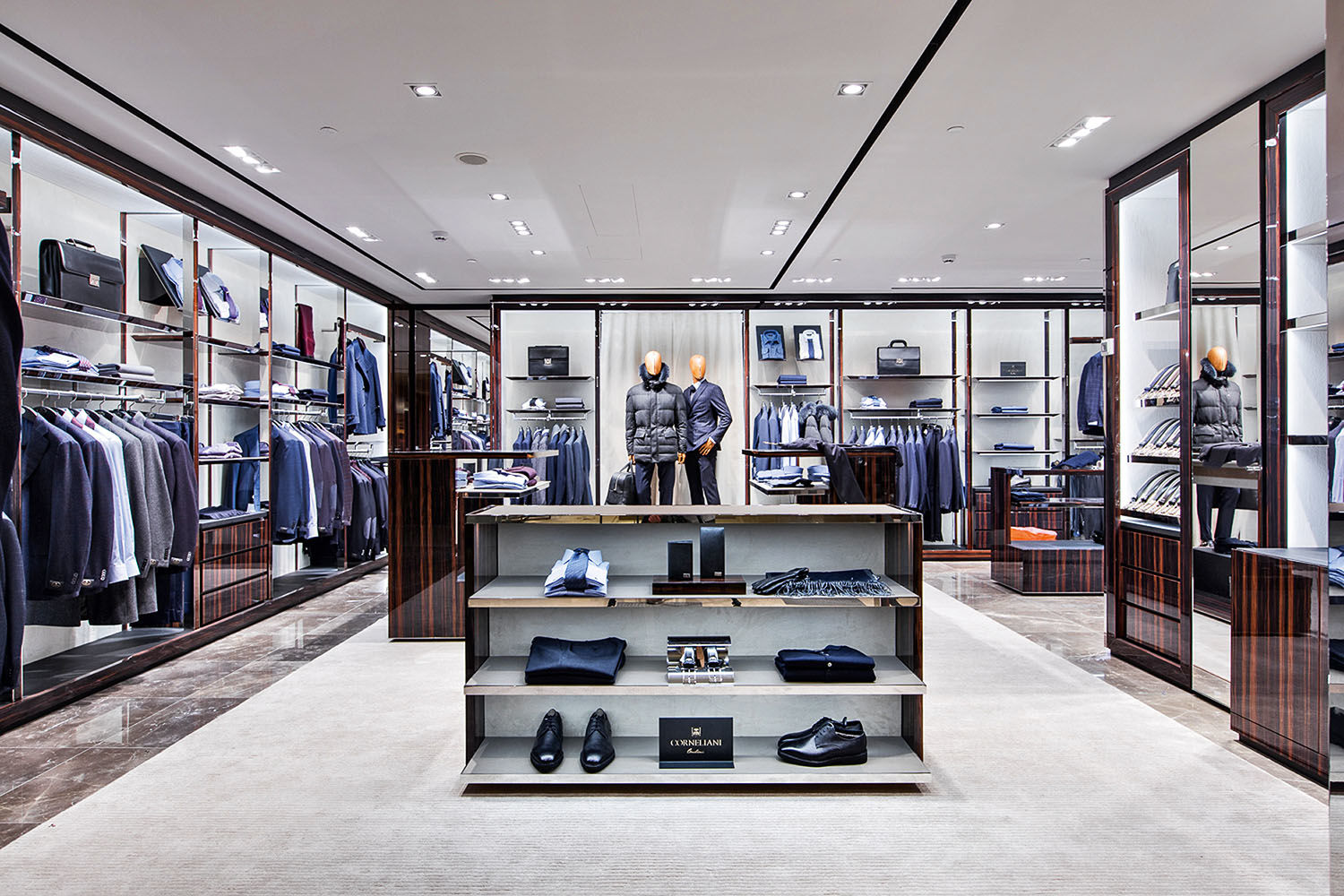 Надо сказать, что крен в сторону развития мужского ритейла за последние полгода стал очевиден. Среди наиболее заметных открытий – корнер Corneliani в ЦУМе. Пространство площадью 130 кв. м разделено на две части: в одной – одежда, в другой – аксессуары. Также есть отдельная VIP-зона, где можно получить услугу индпошива.