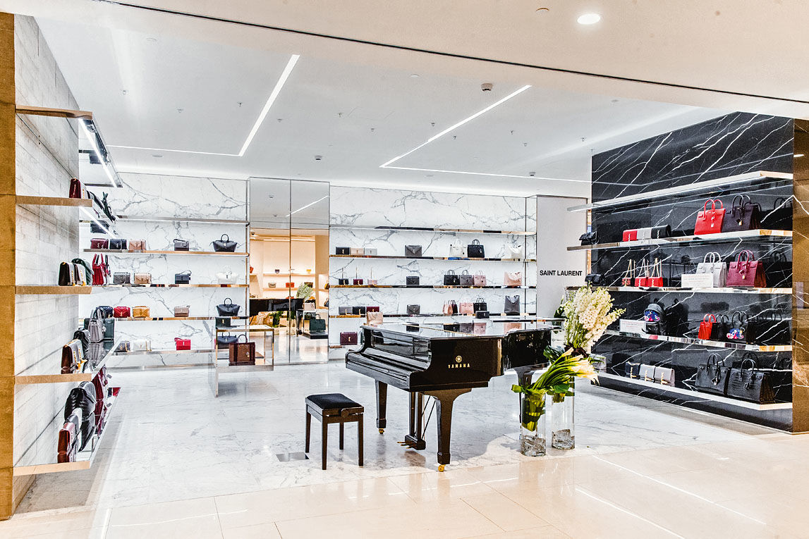 Также в ЦУМе открылись два обновленных корнера c сумками. Украшенный черным мрамором и золотом Dolce & Gabbana площадью 111 кв. м и Saint Laurent (80 кв. м) – в интерьере с многочисленными зеркальными полками с подсветкой. Посредине зала расположился рояль. (Ну а с полным ассортиментом Saint Laurent можно ознакомиться в новом большом бутике Дома в «Барвиха Luxury Village», занимающем 280 кв. м.)