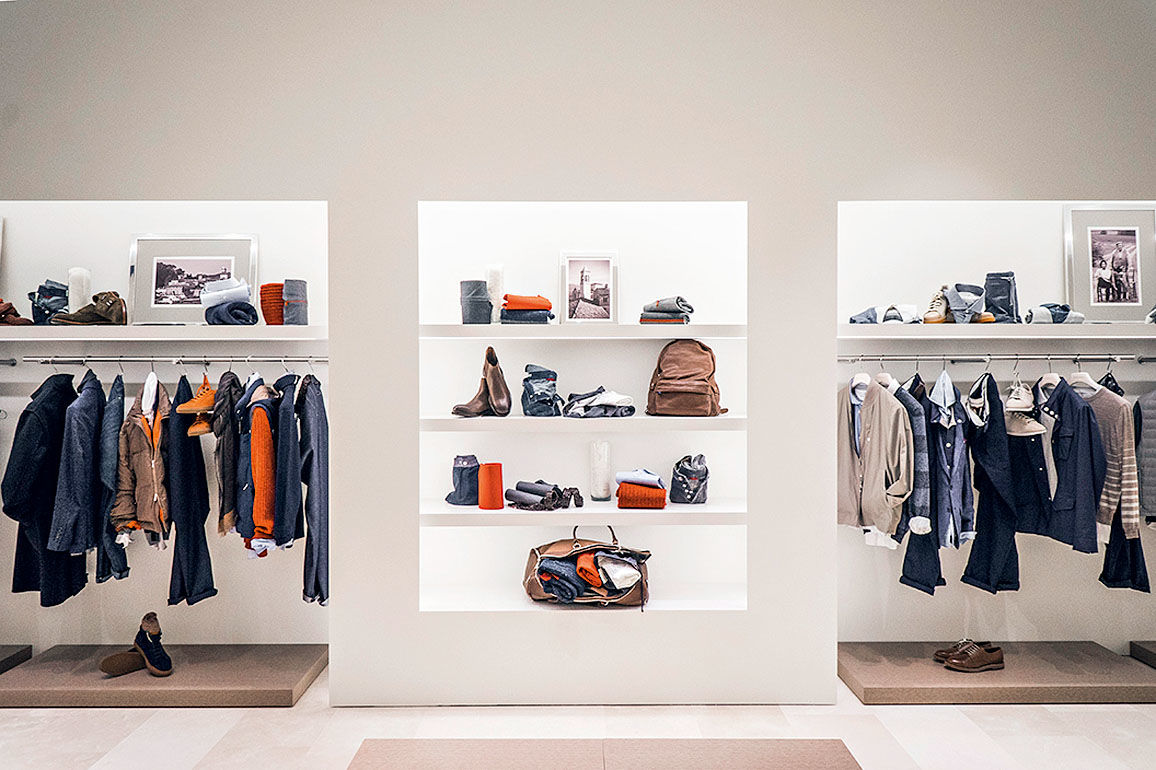Помимо Larusmiani компания «Кашемир и шелк», которая продолжает уверенно реализовывать стратегию по открытию монобрендовых точек своих «пакетных» марок, представила на суд потребителей бутик Brunello Cucinelli (во «Временах года») с мужской одеждой, обувью и аксессуарами и с итальянским интерьером в новом дизайн-концепте. Пол выложили плитами, привезенными из каменоломен Умбрии – собственно, оттуда, где и находится фабрика, созданная доктором философии и бизнесменом Брунелло Кучинелли. Деревянную мебель отделали кашемиром и льном, а лаборатория света Viabizzuno разработала умную светодиодную подсветку, которая придирчиво передает все фактурные и цветовые нюансы драгоценного трикотажа.