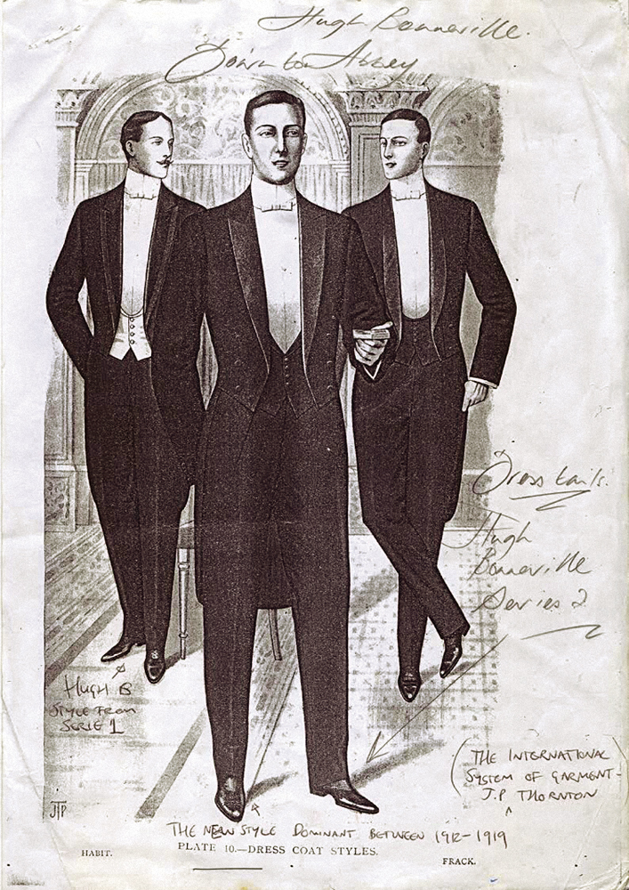 В то время в Huntsman работал портной Дэвид Уорд, позже основавший собственное ателье David Ward. После разговора между Бакстон и Уордом стало понятно, что фрак по сути не сильно изменился с начала XX века и на Сэвил-роу по-прежнему используют те же самые ткани и лекала для создания этого мужского наряда. Было решено, что Уорд сделает для Хью Бонневилля фрак, жилетку и пару брюк.