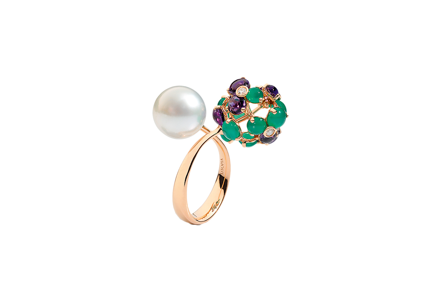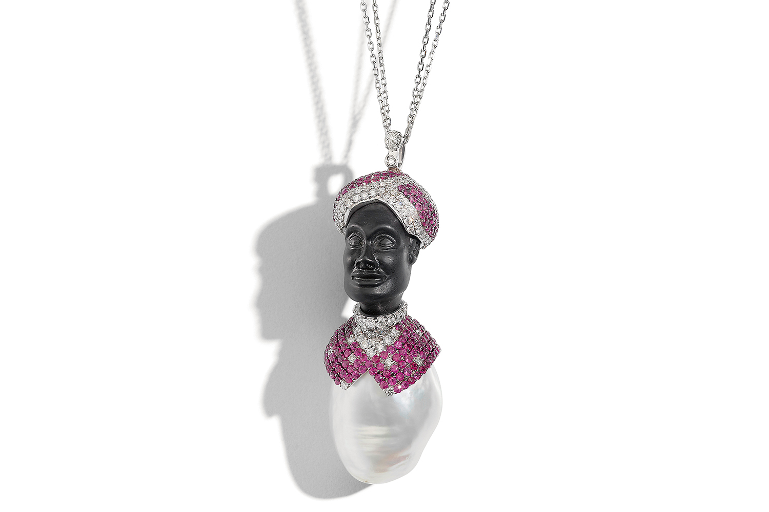 Итальянский бренд Utopia, оставшийся после ухода двух других жемчужных форпостов Baselworld – Mikimoto и Autore, – самый интересный в этой области, всегда отличался оригинальными коллекциями с жемчугом на каждый день. Таковы в этом году собрание Anemone (золотые пучки с бриллиантами вокруг жемчужины) и Cherry Blossom (соцветие из розовых халцедонов, гранатов и лунных камней на одном конце украшения уравновешивает жемчужина на противоположном). Но все же самое интересное на этом стенде (и здесь он не исключение из прочих) – это уникальные изделия: ветка коралла с жемчужиной в его ветвях превращена в брошь, а огромная барочная жемчужина, послужившая телом мавра в тюрбане, стала оригинальнейшей подвеской.