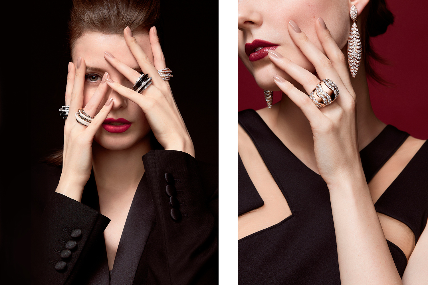 Сильной стороной Еужении Бруни, креативного директора Pasquale Bruni, всегда была удивительная эргономика и текучесть даже самых сложных ювелирных конструкций, вдохновленных флористическими формами. Так, и новая «высокая» коллекция Zefiro and Flora состоит из наслоения лепестков из белого и розового золота в россыпи бриллиантов, и конструкция серег, браслетов и колье такова, что создается ощущение, что ты держишь в руках лишь гибкую натуральную листву. Похожие листочки, но уже вокруг – рубеллитов и морганитов грушевидной огранки Еужения назвала Vento, и, несмотря на крупный размер, они также органично смотрятся на теле.