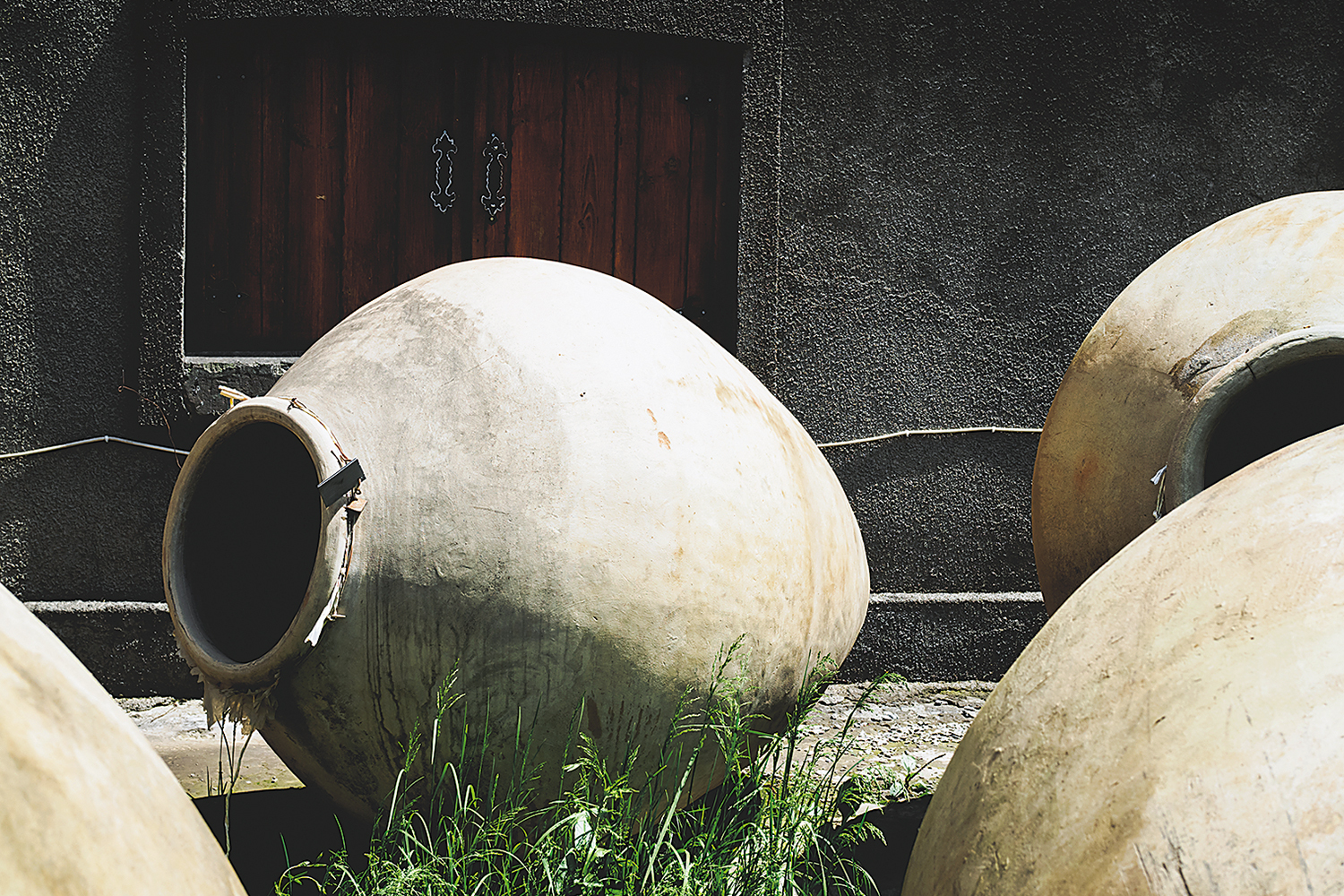 Во дворе винодельни «Воскеваз» собрана целая коллекция таких амфор. Здесь с 1932 года советское правительство постоянно наращивало обороты производства вина. Тогда о прихотливых карасах надолго забыли, потому что количество было важнее качества. Для ферментации стали использовать огромные эмалированные емкости, а для выдержки строили целые подземные комнаты. Советское наследие семья Оганесян, нынешние владельцы винодельни, оставила на память. Цистерны как павшие титаны стоят в погребах молчаливым символом массового производства. Стены комнат, некогда доверху заполненных вином, за десятилетия покрылись острыми кораллами винного камня.
