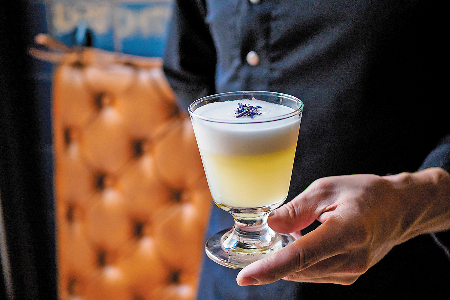 Успех русской темы закрепили в Xander, по-имперски великолепном баре отеля Four Seasons Hotel Lion Palace St. Petersburg. Блеск полированного мрамора и утонченный дизайн, тепло камина и картинный вид на Исаакиевский собор — сюда приходишь, когда хочешь получить все и сразу. История, культура, искусство смешались в интерьере, разлились в атмосфере и идейно наполнили коктейльную карту от миксолога Андрея Амелина, состоящую из трех разделов. Напитки получились идейными. Так, Lions mule из классического «Московского мула» перевоплотился в сугубо петербургский. Во времена блокады города весь сад вокруг Исаакиевского собора был засажен неприхотливой капустой. Она и подала идею создания коктейля. Сок фиолетовой капусты в нем исполняет главную партию при аккомпанементе водки, ликера гибискуса, ревеня с толикой сладости душистого османтуса и цветочной пыльцы. Во рту остается только легкая горчинка имбиря с красной капустой. Плодово-ягодное настроение дает и «Savory sour». Специально для этого коктейля можжевеловый полугар настаивают на перце, добавляют вермут, жасмин и какао бобы. На него нужно отвести побольше времени, опустить кусочки сухофруктов сверху на дно бокала и наблюдать, как меняется вкус напитка. Легкое девичье «Прикосновение лета» в Xander отличается ярким южным акцентом крымского рислинга с белым портвейном, с клубникой, черешней и с домашним дынным ликером.
