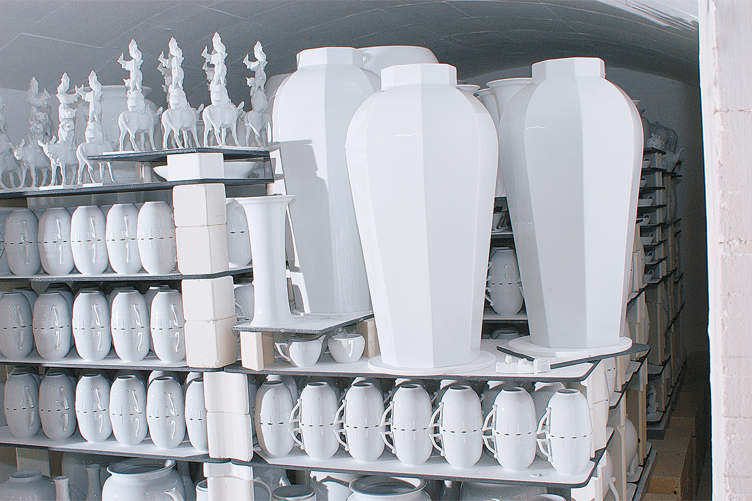 Для производства фарфора мастера используют три основных ингредиента – каолин, кварц и полевой шпат, – из которых изготавливают смесь по собственной рецептуре. Вылепленное изделие подвергается одному из двух видов декорирования – надглазурному (при температуре 820 градусов) или более сложному внутриглазурному (1250 градусов), в результате которого краска проникает внутрь глазури.