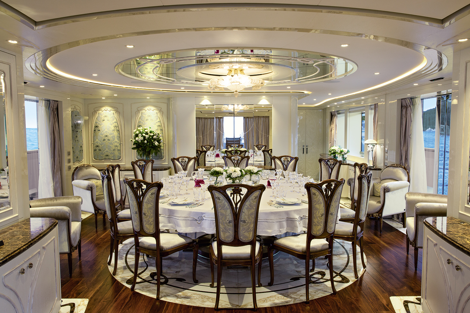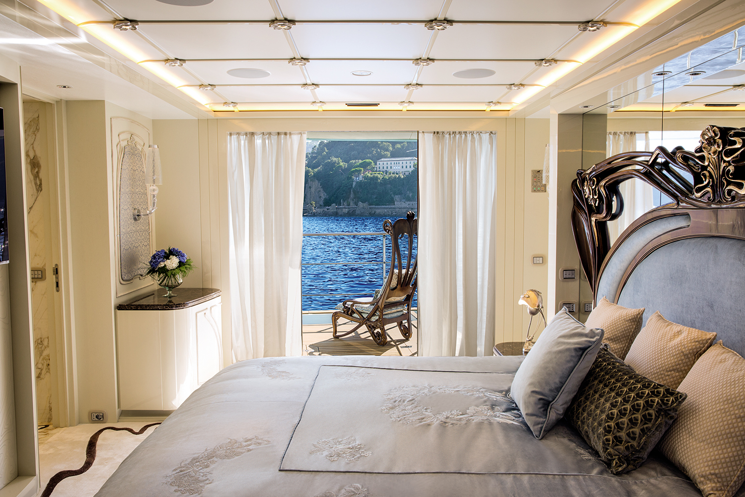 Если Irisha и Elandess — это вполне себе брутальный неоклассицизм, то Latona (50 m, CRN) — его романтическое воплощение. Эта яхта, созданная итальянской верфью CRN в тесном сотрудничестве с Zuccon International Project, является гимном изысканному стилю «Либерти». Latona — вдохновенная и скрупулезная попытка воссоздать стиль начала XX века. Но не в тяжелом варианте а-ля Гранд Отель Будапешт, а в легком средиземноморском формате. Впрочем, несмотря на ностальгический характер, Latona вобрала в себя все современные тренды — откидные балконы в главном салоне и в мастер-каюте, большие зоны для отдыха под открытым небом, огромный лаундж на нижней палубе, граничащий с купальной платформой, спортзалом, хаммамом и гаражом для тендера, куда тот может заплыть самостоятельно, высадив гостей уже на борту. Для 50-метровой лодки это более, чем революционно.