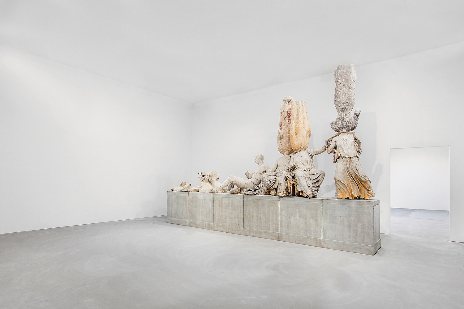 Китайский художник Сюй Чжен воспроизвел в отведенном ему зале часть скульптурной композиции Парфенона, и буквально на головы древнегреческим богам и героям водрузил скульптурные фигуры бодхисаттв. И наверное, это самый очевидный объект на выставке для любого ее посетителя – столкновение Запада и Востока, двух цивилизаций и двух менталитетов. Художник Хосе Давила подражает своему коллеге Дональду Джадду, нынче покойному ключевому представителю минимализма: тот прославился своими скульптурами-«коробками», или «стопками», которые он помещал на стену по вертикали, одна над другой. Только Джадд создавал свои работы из камня, а Давила повесил на стену самые настоящие картонные коробки. Точно так же прислоненные по соседству к стене две доски для серфинга от Риины Спаулингс на деле оказываются выточенными из мрамора. И это два ярких образца того, как банальное изменение материала моментально меняет и ценность объекта, и его утилитарное предназначение, низводит или возвышает. И подобных примеров на выставке немало.