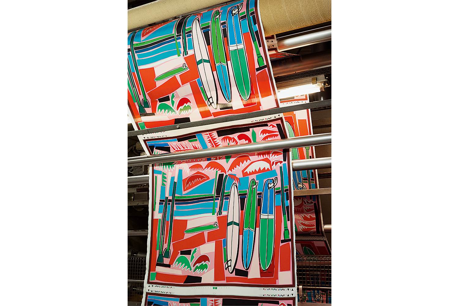 Непосредственно печать по шелку осуществляется там же, в мастерских в Лионе. В своей работе печатники используют метод «плоской рамки», также называемый «лионской печатью», изобретенный здесь в 1930-х годах. Суть метода состоит в следующем: стальная рамка (изготовленная по цветовому трафарету) с покрытием из тонкой сетки устанавливается на отрез из шелка длиной 150 м, который натянут на печатном столе. Затем с помощью резинового валика печатник наносит на ткань первый цвет. Валик движется вперед и назад вдоль рамки, равномерно распределяя и собирая лишнюю краску, чтобы добиться ровной печати. Последующие цвета – по одному на рамку – печатаются на шелке через сетчатое покрытие в строгом порядке.