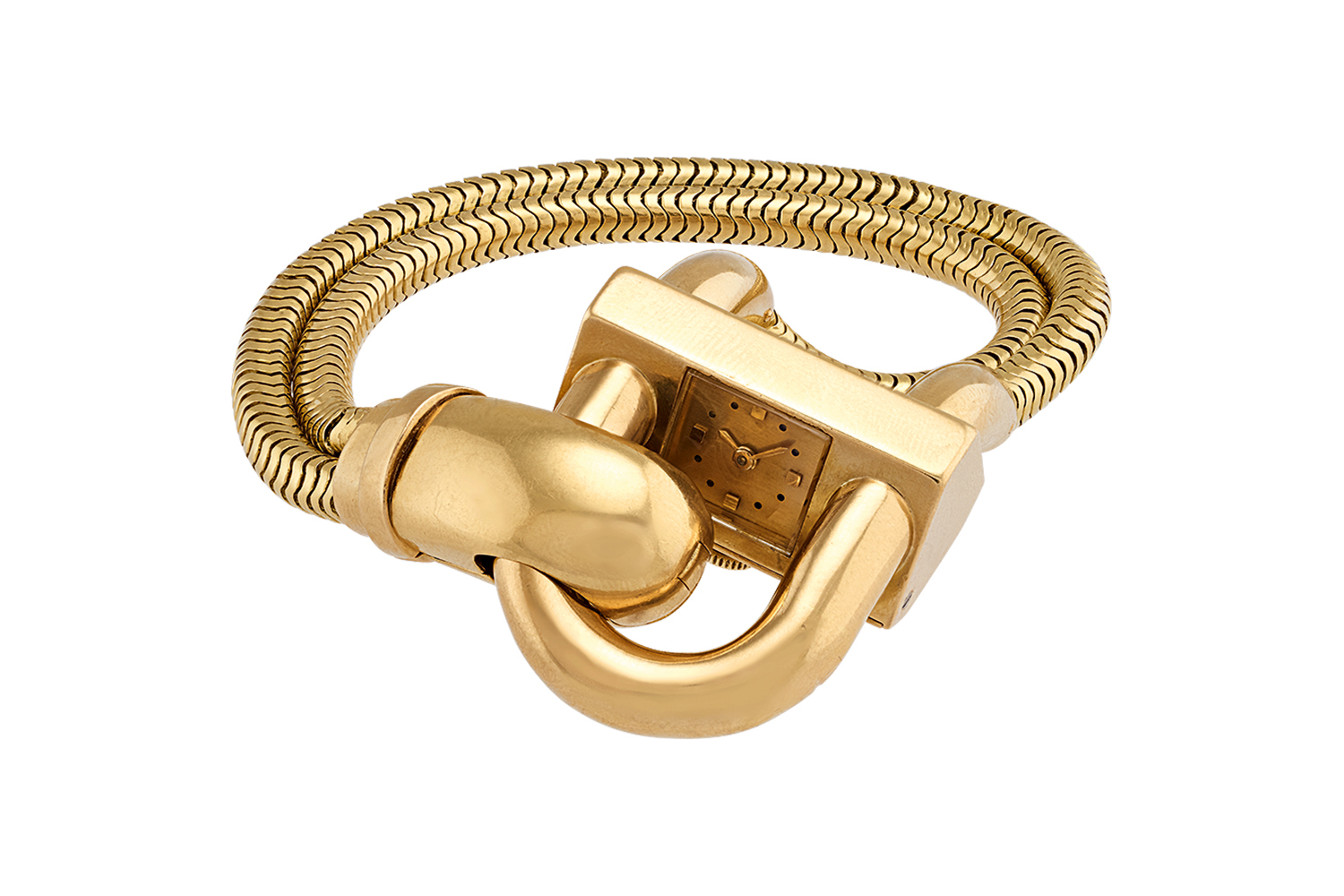 Тогда же, в 30-х годах, в компании придумывают знаменитую невидимую закрепку Serti Mystérieux, или Mystery Setting, визитную карточку Van Cleef & Arpels. А в 1937 году создают часы Cadenas с оригинальной геометрической конструкцией корпуса на браслете-цепочке – образцы этих изобретений тоже есть на выставке.