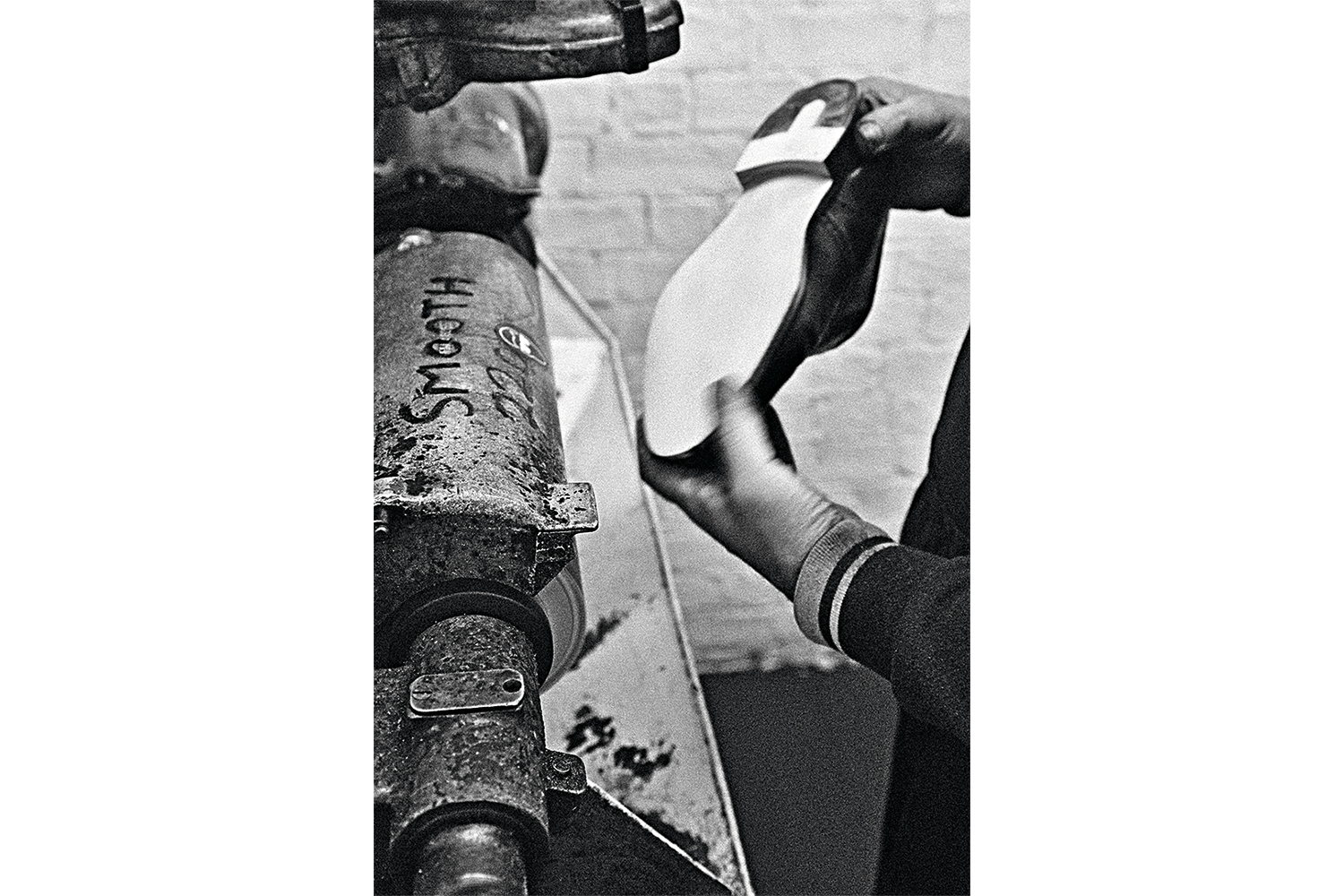 Еще один неожиданный момент – пробковая подошва. Измельченное пробковое дерево, смешанное со специальным клеем, намазывают на внутреннюю часть подошв ножом, как шоколадную пасту на тост. «Пробка – живой материал, она дышит, – объясняет пробковых дел мастер. – В такой подошве не размножаются бактерии и обувь не будет иметь запаха. Со временем подошва изнутри примет форму ноги владельца и посадка станет идеальной».