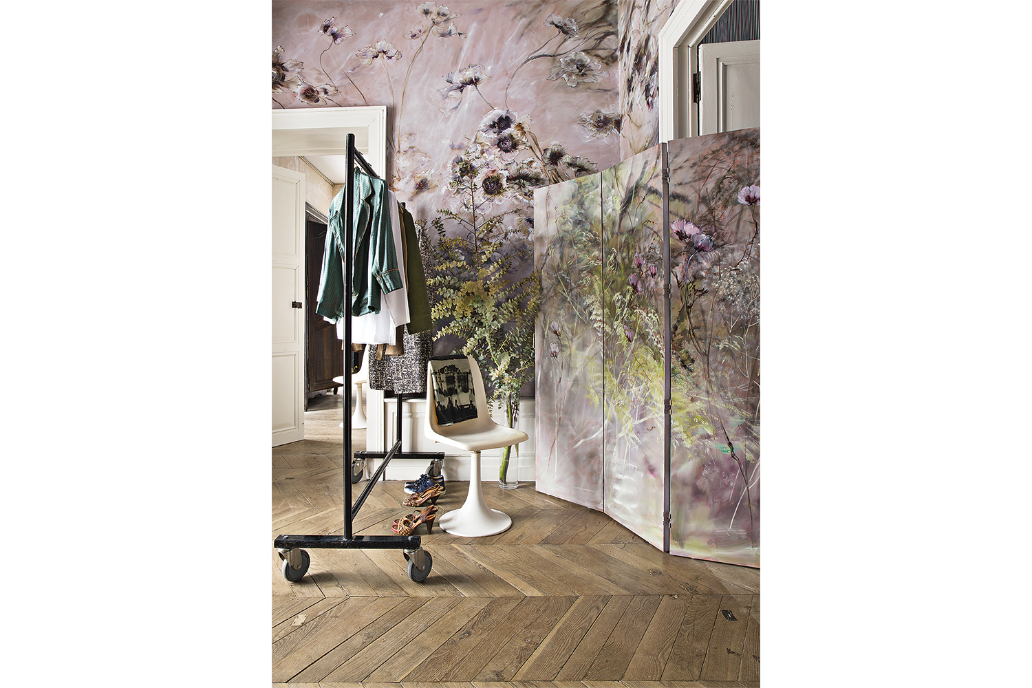 Н арисованные почти в натуральную величину цветы и деревья, главные источники вдохновения художницы, живут в интерьерах. Клер Баслер смело перенесла живописную сказку в реальность и стерла границу между домом и выставочным пространством. Несколько раз в год двери замка открыты для посещения, а отдельные творения художницы представлены в московской K35 Art Gallery.
