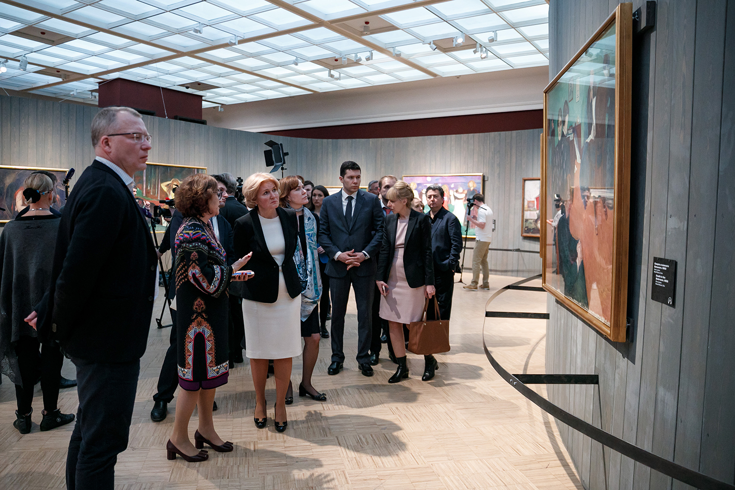 М асштабная выставка «Эдвард Мунк» стала первой ретроспективной всемирно известного норвежского художника в России за последние 35 лет со времен выставки в Эрмитаже. А потому во внутреннем дворе Инженерного корпуса Третьяковской галереи, на ее торжественном открытии, можно было видеть даже тяжеловесов бизнеса и политики, которые обычно сторонятся громких событий пусть и с характеристикой «культурные». Впрочем, данное происходило еще и при поддержке Министерства культуры Российской Федерации и посольства королевства Норвегия в Москве, то есть на правительственном уровне, что также послужило для многих причиной быть непременно.