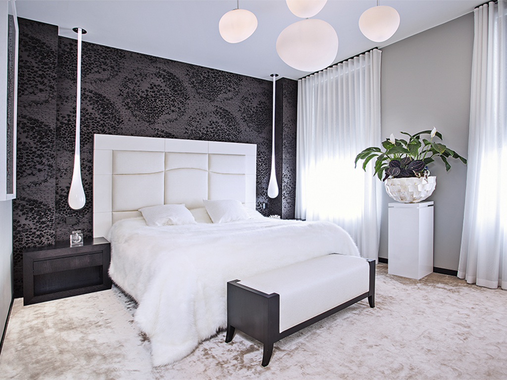 Интерьер наполнен произведениями современного искусства, дающими правильную энергию, и дизайнерскими предметами мебели и света. Декоратор – поклонница скандинавской и итальянской школы, но не любит классику. Стол от Riva в столовой выполнен из цельного куска дерево каури из Новой Зеландии, на срезе которого видна каждая вена. Спальню украсила эстетская композиция знаменитой люстры Cloud от Foscarini со светильниками-каплями от Leucos. Сад охраняет железная скульптура Майка Тернера «Горилла».