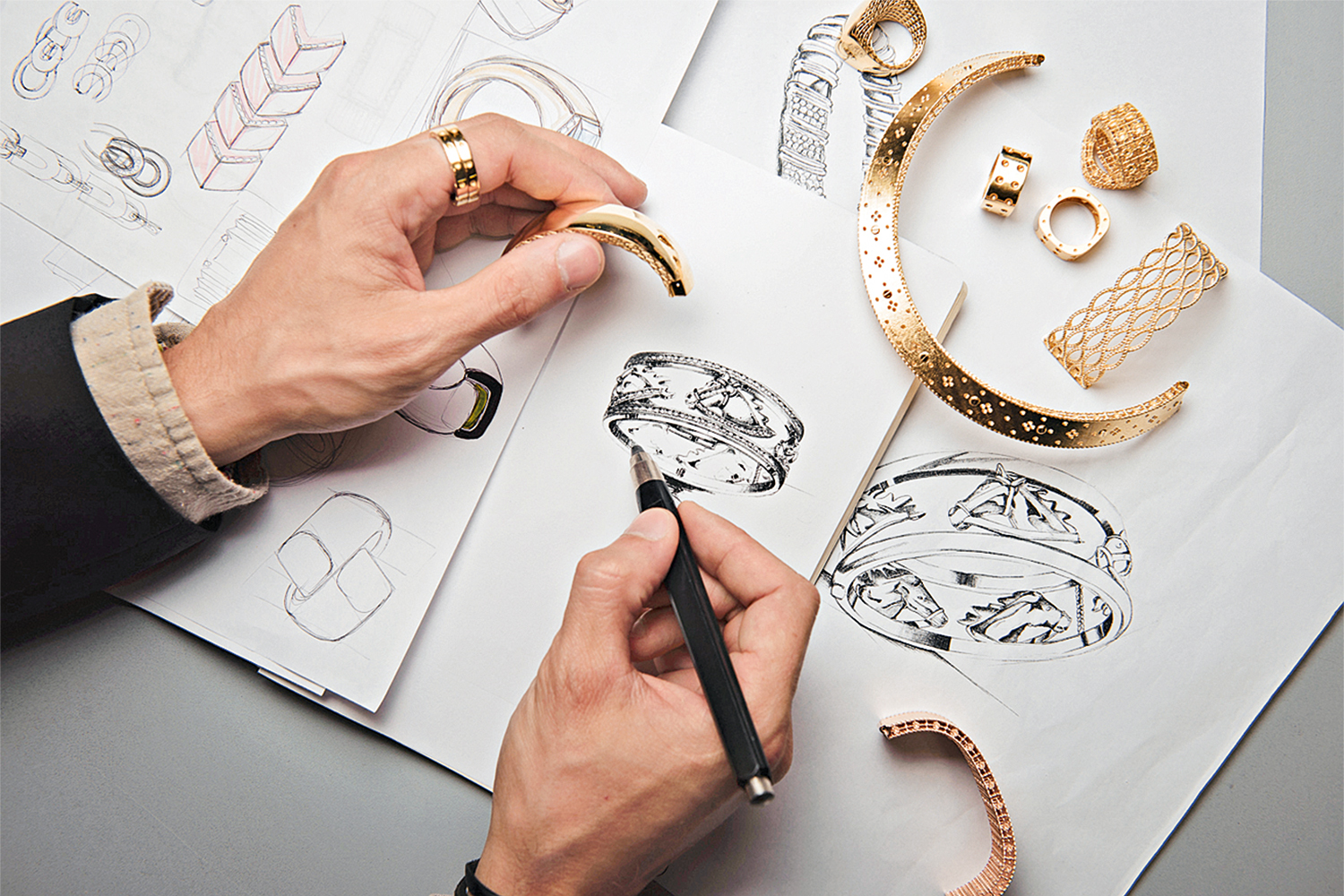 Не могу сказать, что я идеальный рисовальщик, который делает безупречный эскиз, нет. Я фонтанирую множеством идей, набрасываю их в виде не слишком профессионального эскиза, потом отдаю его своему дизайнеру и объясняю, что хотел бы видеть в итоге. Он доводит эскиз до совершенства, и мы отдаем его нашим мастерам-ювелирам. Но что касается производства, в нем я настоящий эксперт, сегодня нет в мире украшения, про которое я бы не знал, как оно изготовлено.