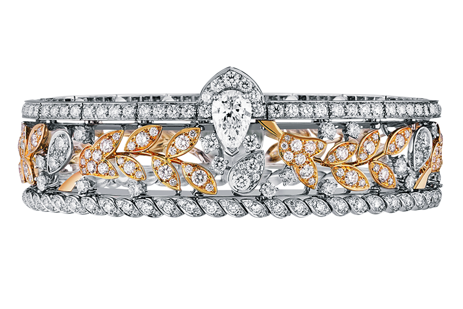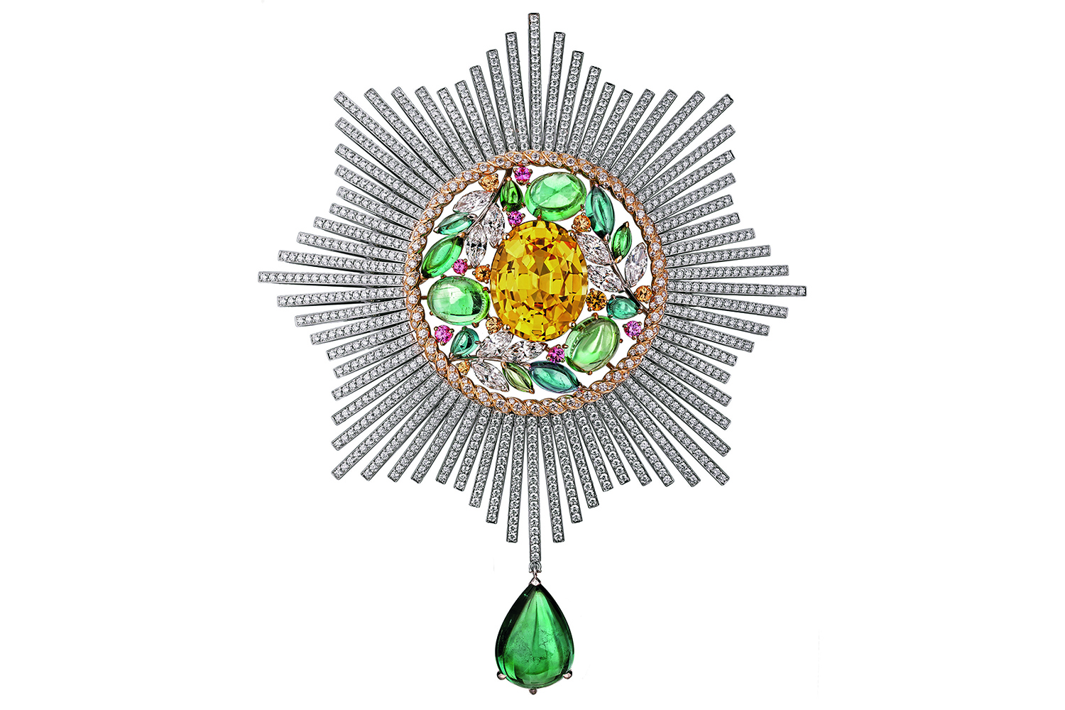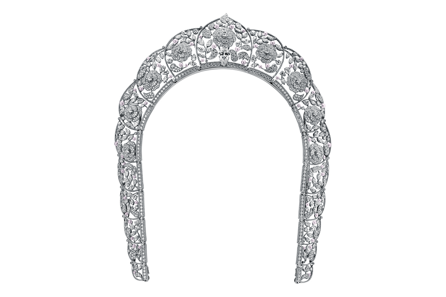 Не обошлось и без пшеницы – недаром в 2017 году этому символу была посвящена целая коллекция Les Bles de Chanel. В новом собрании скромные золотые колоски в россыпи бриллиантов Ble Gabrielle соседствуют с щедрыми, более роскошными драгоценными предметами Ble Maria, названными в честь княжны Марии Павловны. Яркий узор из зеленых турмалинов, розовых шпинелей, мандариновых гранатов и бриллиантов украшает изящную тонкую тиару и красуется внутри лучистой броши-ордена. Еще одна тиара в коллекции представлена в линии Sarafane, и она одновременно трансформируется в колье.