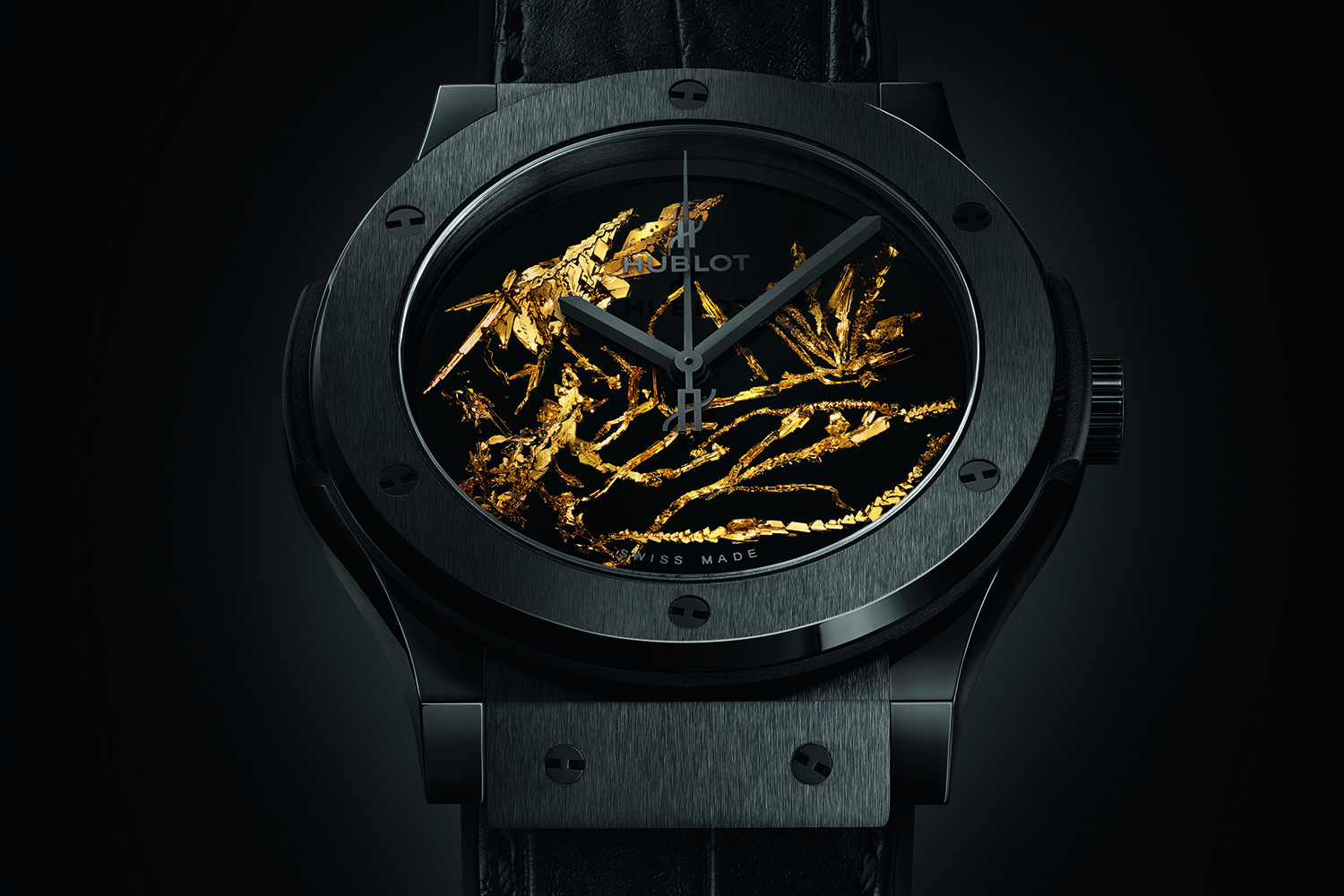 «Теперь мы способны воспроизводить у себя на мануфактуре золото в его редчайшей форме на планете. И перенести феномен золота, что с глубины веков существует в окружающей среде в Швейцарии, на циферблаты часов Hublot. Теперь мы ежедневно можем любоваться этим драгоценным природным ископаемым в его самом красивом и магическом выражении» – так Рикардо Гвадалупе, генеральный директор Hublot, прокомментировал новое произведение часового, ювелирного и технологического искусства возглавляемой им мануфактуры.
