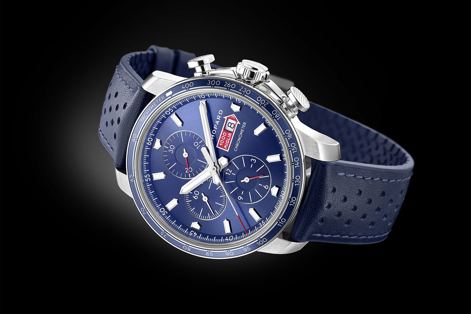 В коллекции часов Mille Miglia, ежегодно обновляемой брендом Chopard к одноименному ралли ретромобилей в Италии, вышли две новые модели. Mille Miglia GTS Azzurro Power Control в корпусе 43 мм из нержавеющей стали или 18-каратного розового золота – это часы с автоматическим заводом, указателем даты и индикатором запаса хода в форме автомобильного топливомера. Хронограф Mille Miglia GTS Azzurro Chrono из нержавеющей стали имеет счетчики, воспроизводящие приборную панель раритетных автомобилей. Обе вариации отличает элегантный циферблат голубовато-стального оттенка Azzurro, который контрастирует с типичным для Mille Miglia красным цветом стрелок, а также оформлением окошка даты в виде легко узнаваемой копии стрелки-указателя «1000 Miglia». Задняя крышка корпуса украшена стальным кольцом с пунктами трассы гонки Mille Miglia «Brescia > Roma > Brescia» и индивидуальным номером каждой серии – одним из 500 или одним из 750 экземпляров.