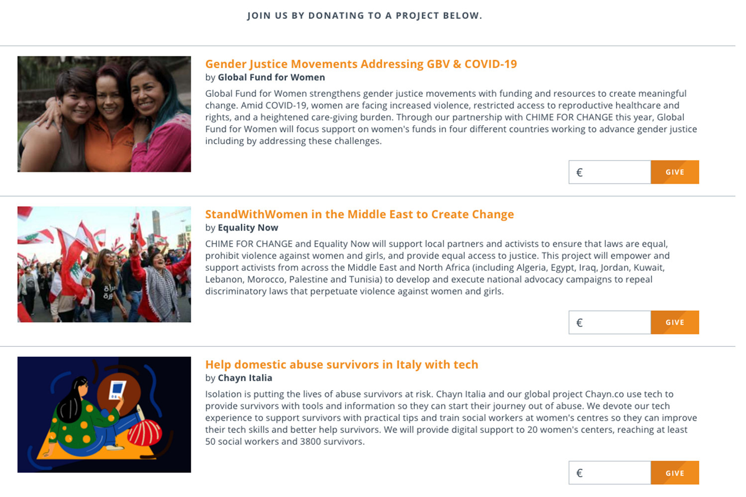 Сегодня под эгидой Gucci организация Chime for Change объединяет усилия с фондом Kering Foundation и запускает новую масштабную кампанию в защиту женщин #StandWithWomen – призыв противостоять росту гендерного насилия в период пандемии. Кампания будет направлена на увеличение финансирования некоммерческих организаций, оказывающих поддержку женщинам всего мира, и на привлечение внимания к проблеме гендерного насилия в период пандемии коронавируса.