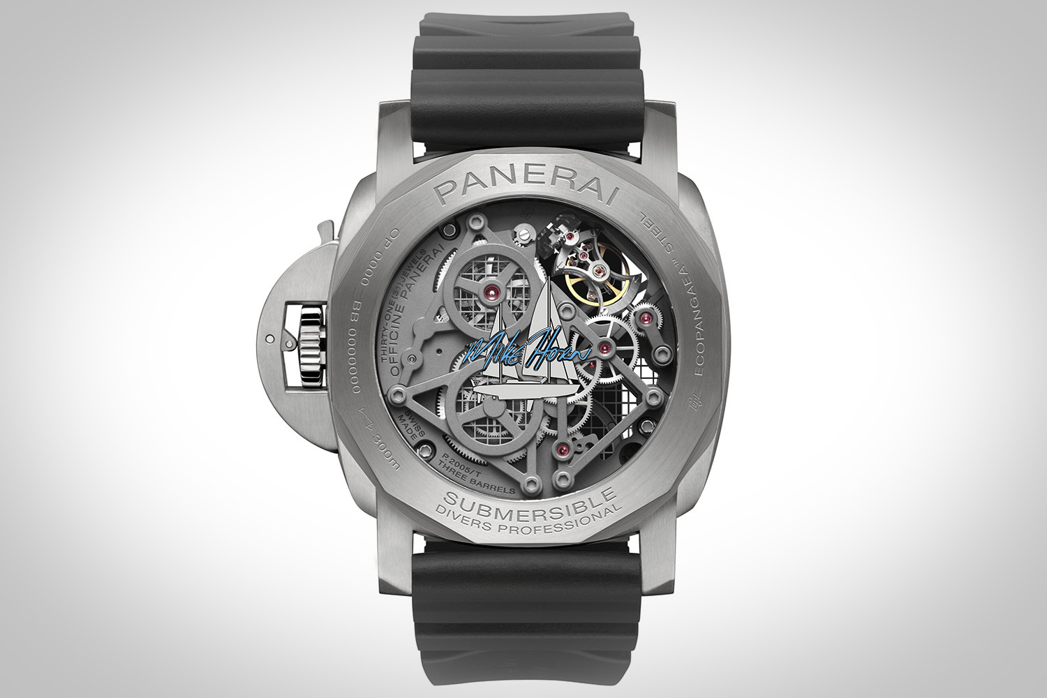 Непосредственное участие в сохранении окружающей среды и использование продуктов вторичной переработки материалов – это также часть философии и корпоративной культуры Panerai. Поэтому в компании нашли способ очистки и переработки приводного вала яхты Pangaea и получили из нее высокотехнологичную сталь, названную EcoPangaea. Сталь приняла форму корпусов пяти экземпляров Submersible Ecopangaea Tourbillon GMT 50 mm Mike Horn Edition.
