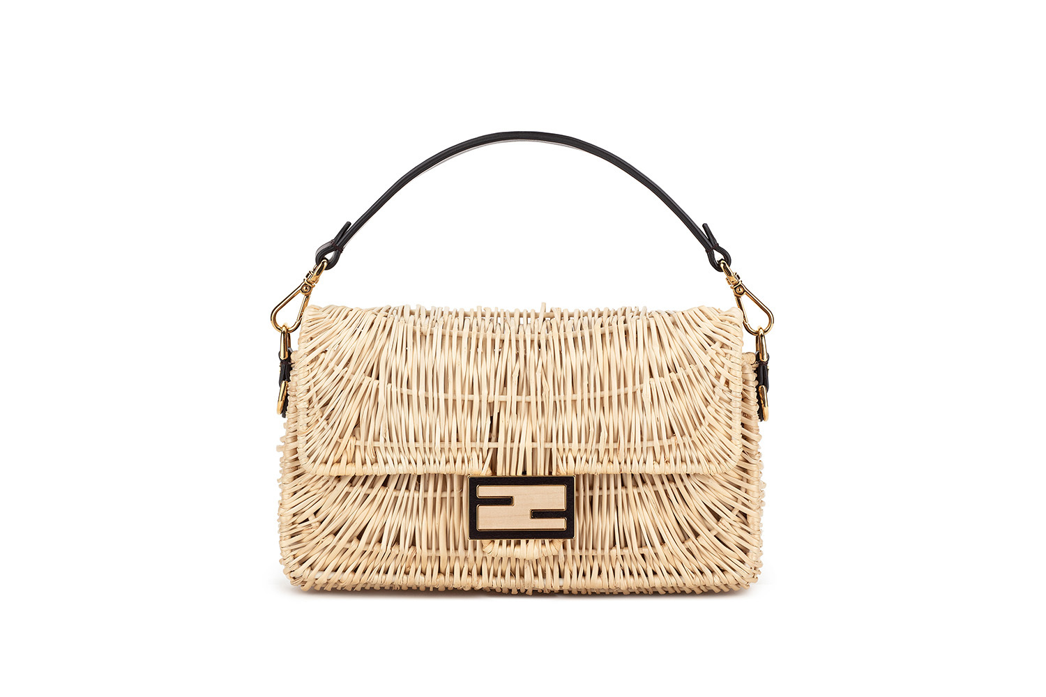 Еще одна сумка сплетена уже из самих веток деревьев – эта техника из региона Марке в центральной Италии восходит к периоду Ренессанса и применяется несколькими поколениями мастеров ателье Bottega Intreccio. Для Baguette ремесленники использовали ветки ивы, которые несколько дней держали в особом натуральном растворе, чтобы материал стал гибким и мягким, а затем плели форму вокруг металлической рамы. В результате Baguette немного похожа на плетеную корзинку и даже пряжка FF сделана из дерева.
