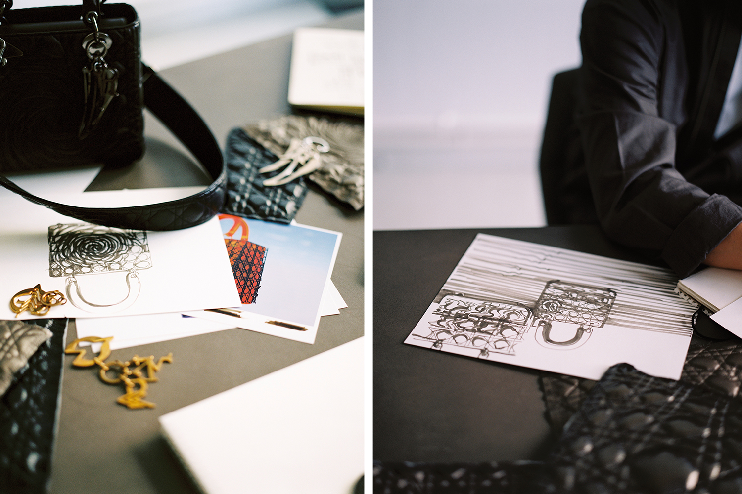 «В техническом отделе Dior работают суперпрофессионалы! Мы послали им по электронной почте свои эскизы, а также список желаемых технологий вроде вакуумной термоформовки пластика или нанесения светящейся пленки, в которых мы хотели бы осуществить свои идеи. И уже на следующей встрече увидели готовые образцы во всех возможных материалах, с помощью которых можно передать задуманный нами эффект. То есть это был двусторонний продуктивный творческий диалог и процесс с командой Dior, – рассказывает Георгий Кузнецов. – Но как только мы все увидели верcию сумки в особым образом простроченной коже, то в ту же минуту единогласно произнесли: эта! Получилась абсолютно узнаваемая знаковая вещь, но с орнаментом каннаж в принципиально новом, трансформированном состоянии. Это визуальная обманка, созданная концептуальным видением Recycle и методом высочайшего мастерства Dior».