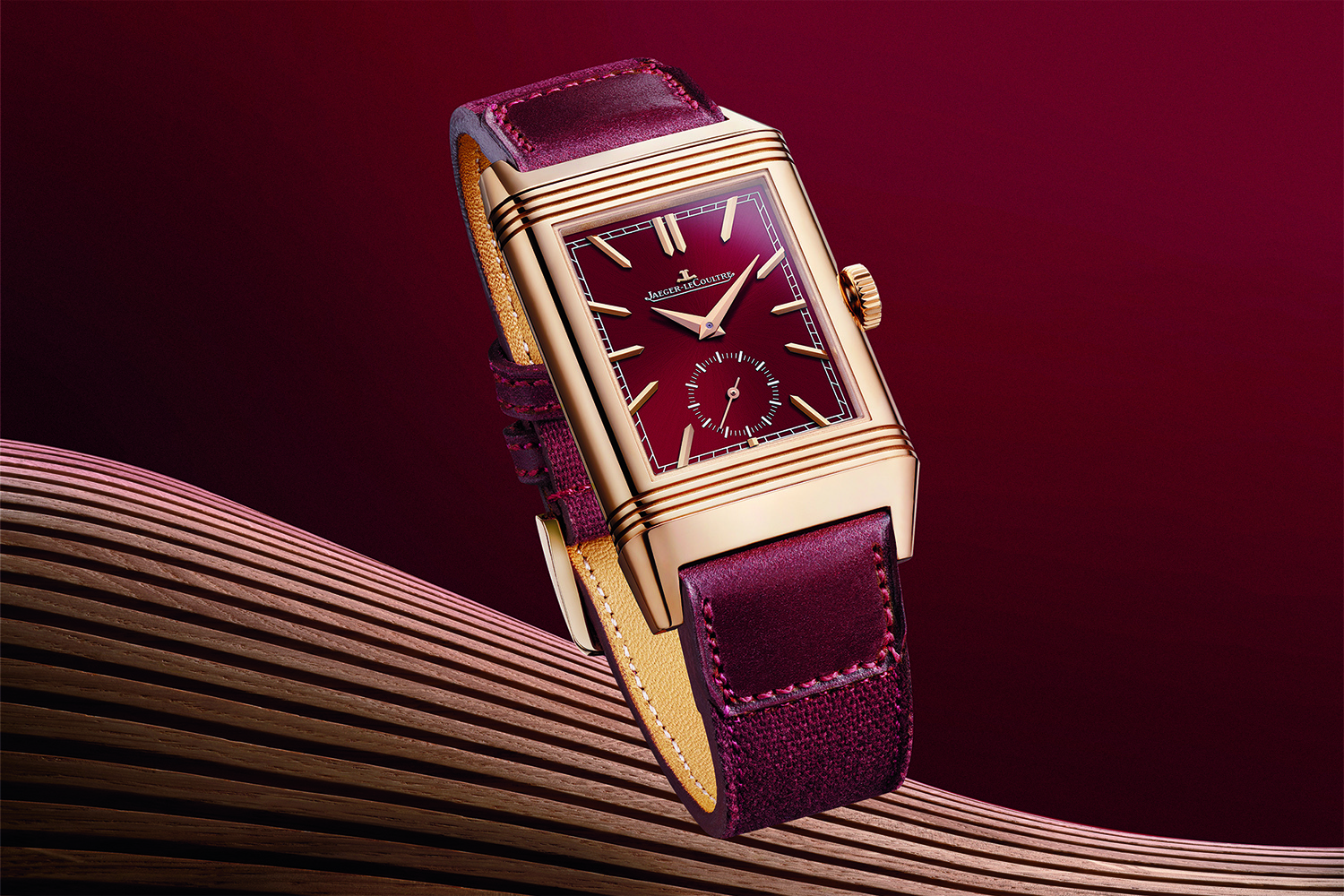 Во-вторых, выпуском лимитированной юбилейной модели – Reverso Tribute Duoface Fagliano создана в корпусе из розового золота, с циферблатом цвета бордо и ремешком, вручную выполненным Casa Fagliano, известным производителем обуви для верховой езды. Эти новые часы заключают в себе индикацию времени второго часового пояса Duoface: концепция была разработана на мануфактуре еще в 1994 году и позволила объединить в одних часах два циферблата – их синхронную работу обеспечивает калибр 854A/2 с ручным заводом.