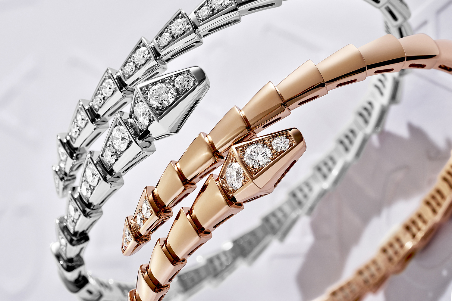 Благодаря постоянному процессу совершенствования мастерства змея Bvlgari всегда была способна проделывать практически те же движения, что и ее настоящая «родственница» – свернуться клубком (причем не только в золоте, но и в высокотехнологичной керамике), «ползти» зигзагом, повиснуть вниз головой или обернуться несколько раз вокруг запястья или фаланги пальца... Именно это ощущение свободного глубокого владения своим ремеслом вдохновило дизайнеров и ювелиров на создание новой формы змеи в коллекции Serpenti Viper, премьера которой состоялась в конце 2020 года и которая продолжает пополняться.
