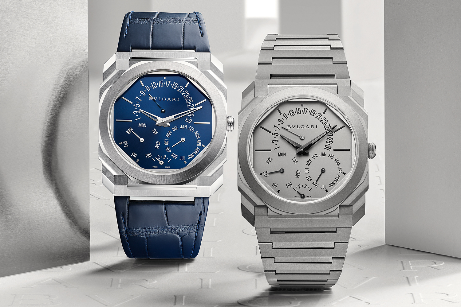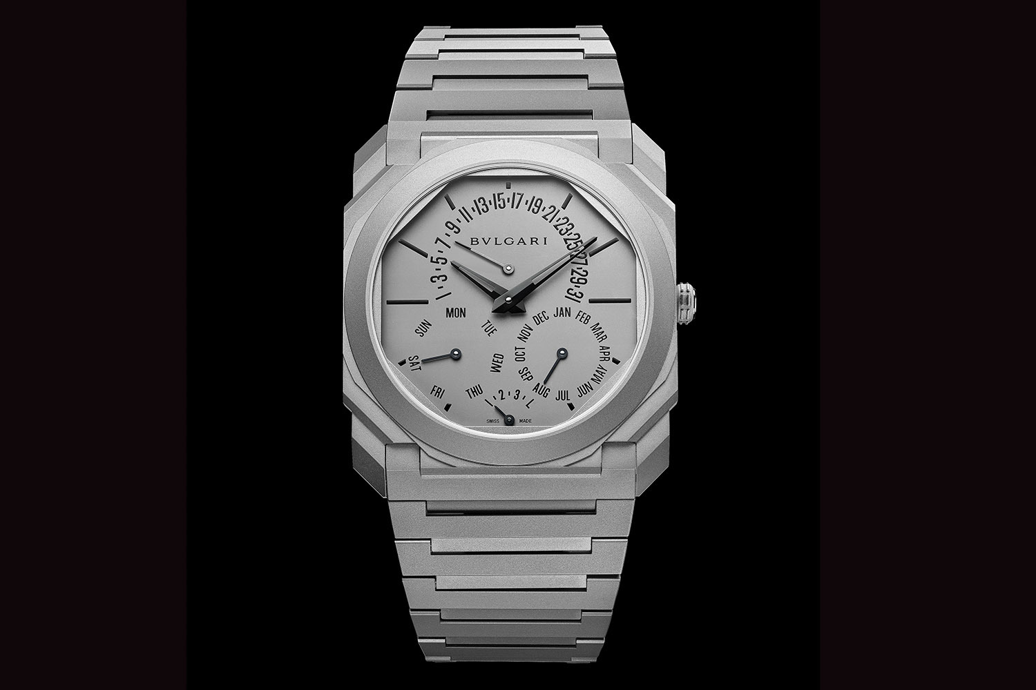 Часовое подразделение римского Дома Bvlgari поставило новый мировой рекорд – самый тонкий вечный календарь в индустрии: толщина корпуса модели Octo Finissimo Perpetual Calendar при 40-миллиметровом диаметре составляет всего 5,80 мм, а толщина автоматического калибра BVL 305 – 2,75 мм. За последние семь лет, начиная с 2014 года, это уже седьмой по счету мировой рекорд, которого инженеры и часовщики мануфактуры Bvlgari в Ле-Сантье добились в коллекции Octo Finissimo. Внутри 40-миллиметрового корпуса Octo Finissimo Perpetual Calendar расположено не менее 408 деталей, взаимодействующих друг с другом. Разработка потребовала от конструкторов использования новых решений, таких как применение системы автоматического завода с мини-ротором, что позволило оптимально распорядиться ограниченным пространством между компонентами часового механизма. Точно так же компактно и рационально, без единого традиционного диска, размещены на секторном циферблате часовая, минутная стрелки и индикаторы вечного календаря, включающие указатели даты, дня недели, месяца и високосного цикла.