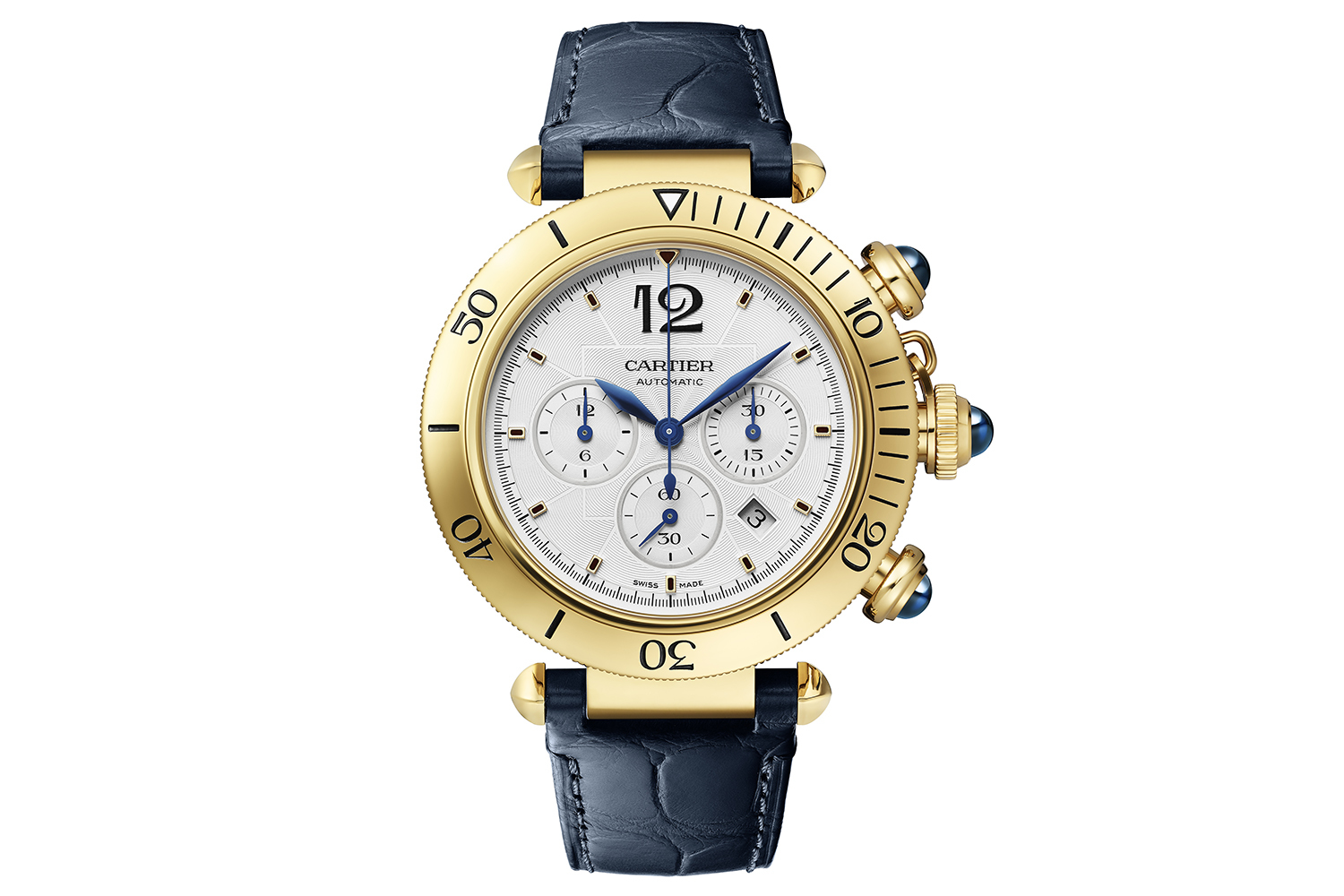 В прошлом году французский Дом Cartier перезапустил свою знаменитую коллекцию часов Pasha к ее 35-летнему юбилею, а в нынешнем добавил в нее новые модели, среди которых особо выделяется хронограф в корпусе 41 мм из стали или желтого золота c мануфактурным механизмом 1904-CH MC. Узнаваемый облик Pasha здесь усилен тремя счетчиками и окном даты на циферблате, вращающимся безелем и двумя дополнительными кнопками управления собственно хронографом. Счетчики дополнены кабошоном из синего сапфира, и вкупе с заводной коронкой между ними эти три элемента придают часам Pasha de Cartier Chronograph брутальный образ, спортивный и элегантный одновременно.