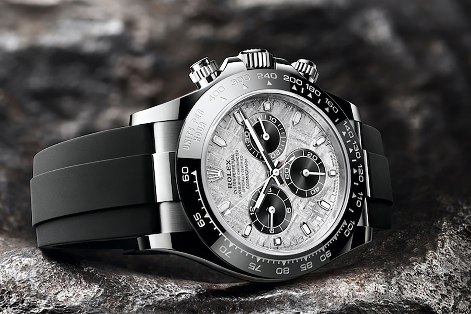 Знаковый для Rolex хронограф Oyster Perpetual Cosmograph Daytona впервые получил циферблат из металлического метеорита, хотя бренд ранее уже работал с этим необычным натуральным материалом. Каждая пластина имеет особую внутреннюю структуру, формировавшуюся несколько миллионов лет в процессе охлаждения астероида, и в нее гармонично вписаны три счетчика хронографа черного цвета. Одна версия Oyster Perpetual Cosmograph Daytona из 18-каратного белого золота снабжена цельным безелем Cerachrom из черной керамики с характерной для этой модели тахиметрической шкалой и браслетом Oysterflex, а две другие версии – одна из 18-каратного желтого золота, другая из 18-каратного золота Everose – оснащены металлическим безелем с тахиметрической шкалой и браслетом Oyster. Часы снабжены калибром 4130 и обладают сертификацией на присвоение статуса сверхточного хронометра.