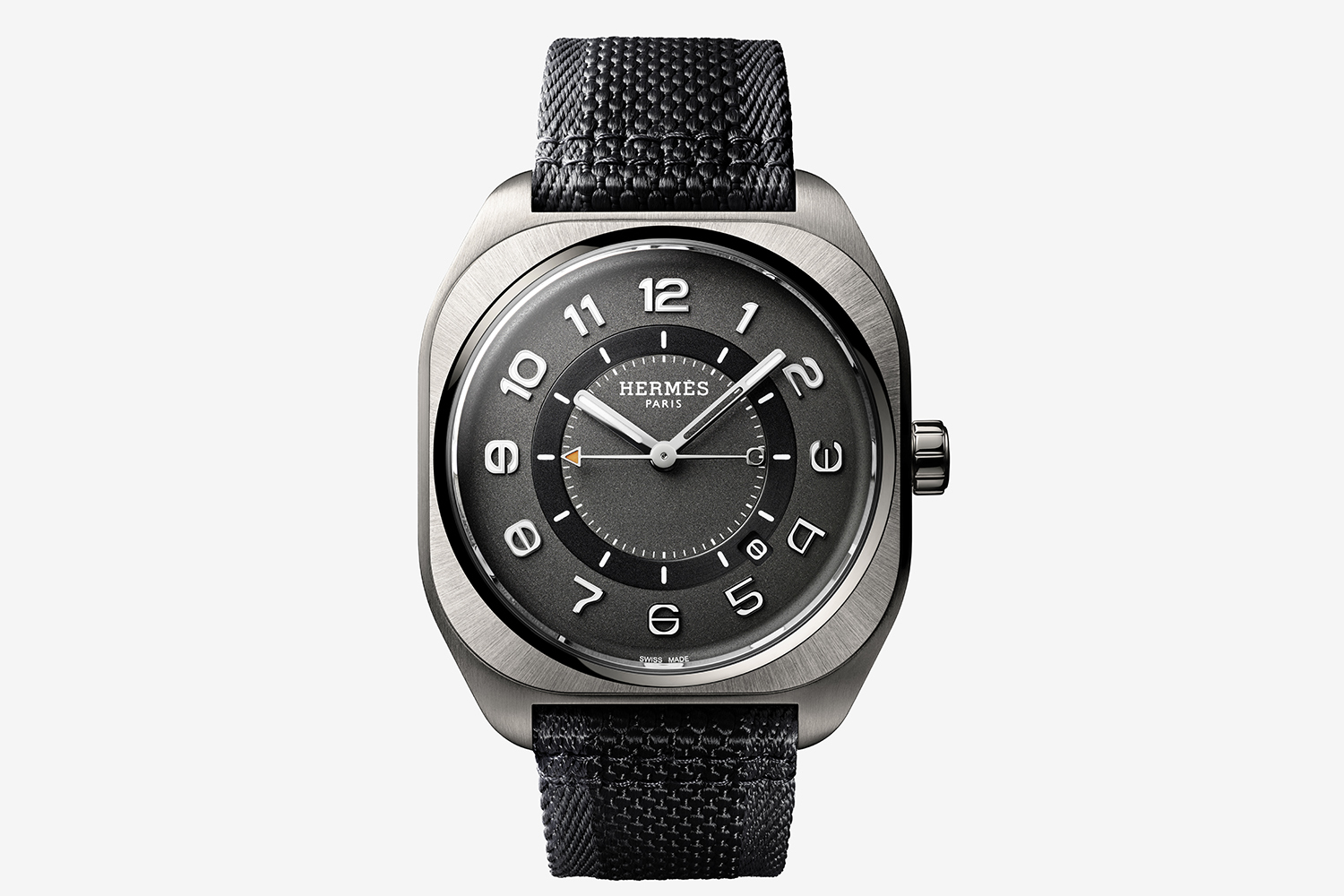 Главная премьера года Hermes – это совершенно новая модель H08 в спортивном стиле, которой не хватало в мужской коллекции часового подразделения французского Дома. Ее динамичный урбанистический характер проявляется и в том, что круглый циферблат вписан в квадратный в своей основе, но со сглаженными углами корпус формы «подушка». Изготовлен он либо из обогащенного графитом композита, либо из титана – оба невероятно легкие, чтобы ничто не обременяло тех, кто ведет активный образ жизни. С этой же целью создан и особый текстильный плетеный ремешок, который, впрочем, можно заменить на более привычный каучуковый или металлический браслет. Оригинальный шрифт арабских цифр на циферблате черного, серого или антрацитового цвета словно эхо повторяет форму корпуса и отсылает к искусству каллиграфии. Окружность металлизированной шкалы с индексами внутри круга цифр нарушена лишь окном даты между метками «4» и «5» – за ее демонстрацию, как и за ход времени, здесь отвечает мануфактурный механизм H1837.