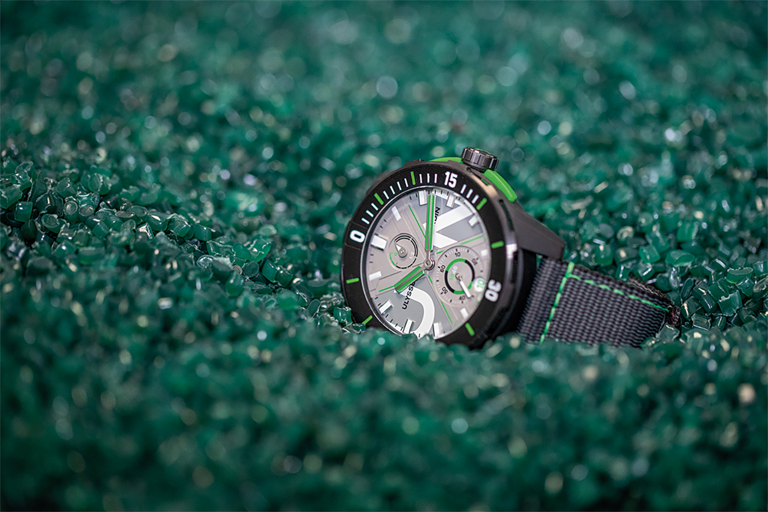 В Ulysse Nardin решили найти собственное решение этой глобальной проблемы. Сначала часовая мануфактура провела специальное исследование по изучению материалов, извлеченных из океана, а затем стала искать пути реализации экологических инноваций в производстве часов из переработанного сырья и нашла подходящих поставщиков.