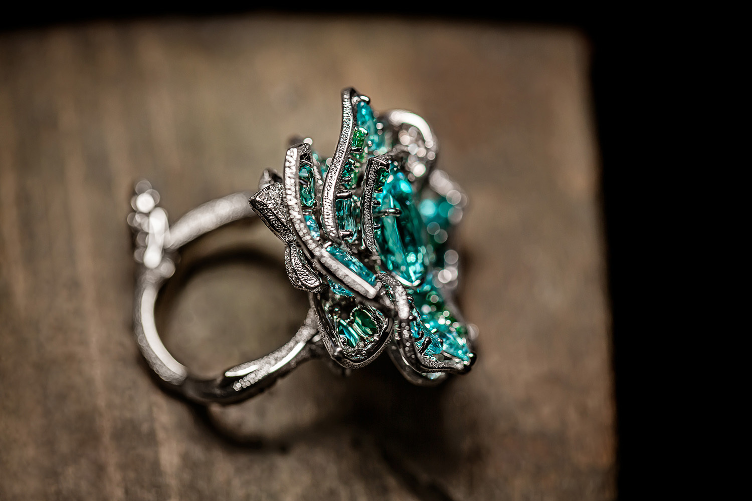 И сейчас, десять лет спустя, RoseDior демонстрирует еще большие чудеса. Идеальным примером ювелирной эквилибристики может служить Y-образное колье с редчайшими турмалинами параиба и мадагаскарским сапфиром весом более 8 карат: небесно-голубая роза, которая сложена из них, украшена каплями бриллиантовой росы и «растет» на стебле с шипами из тех же камней. При этом цветок можно отстегивать и превращать в брошь или коктейльное кольцо, вызывающе эффектное и при этом удивительно гармоничное, как всегда у де Кастеллан.