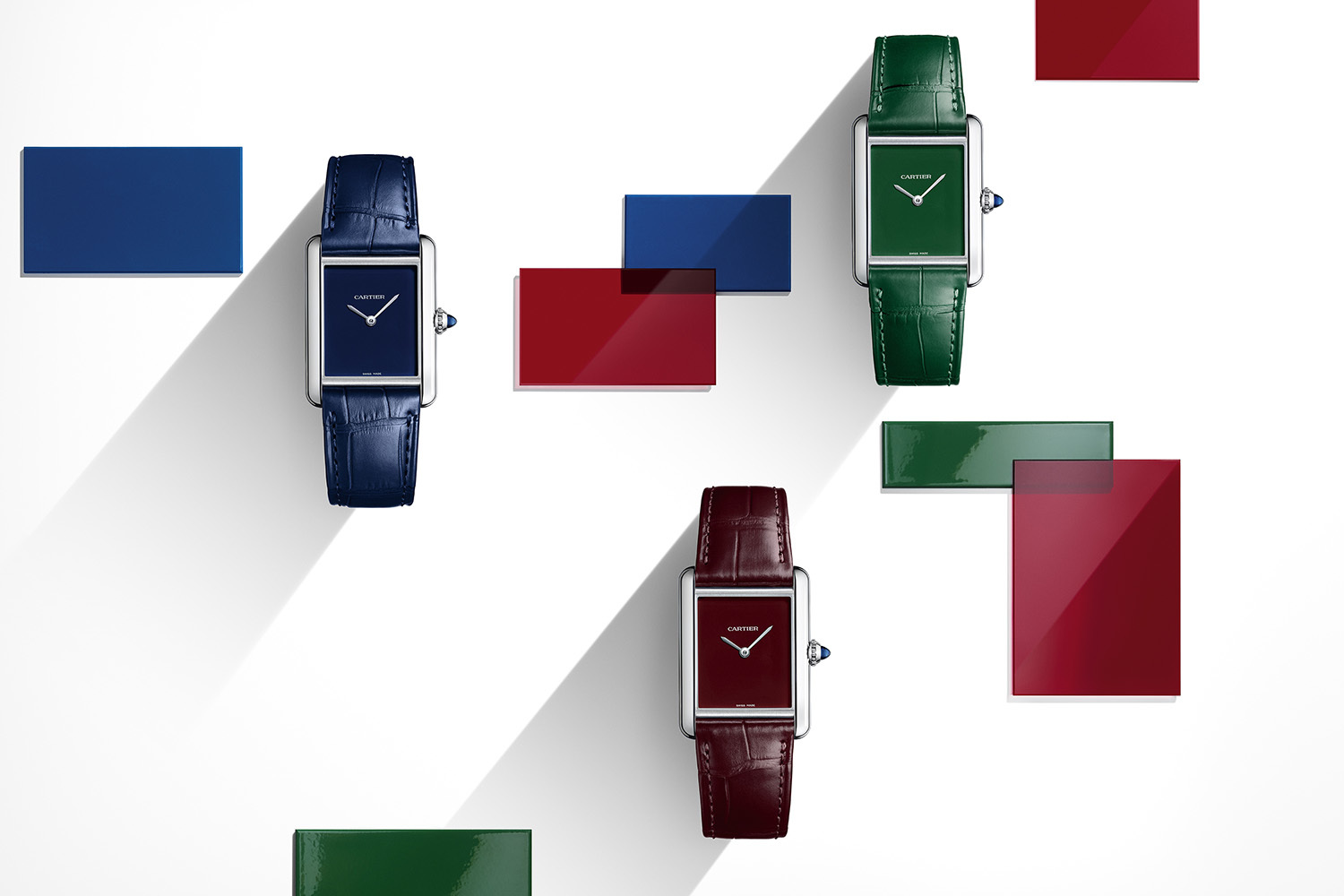 И вот в 2021-м мы дождались возрождения самой коллекции Tank Must – по-прежнему безупречно стильной, минималистского дизайна ар-деко, с неизменным кабошоном синего сапфира на заводной головке и необыкновенно яркого монохромного окраса циферблатов и ремешков – красного, зеленого и синего.