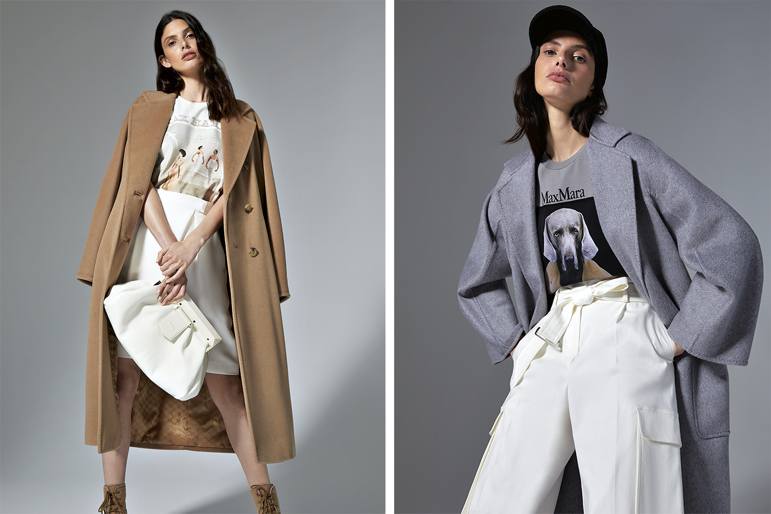Есть модель с рисунком легендарного итальянского иллюстратора 60-х Брунетты Мательди. С работой Эрберто Карбони, создателя рекламных кампаний для многих крупных брендов (кстати, в 1958 году Карбони разработал рекламный плакат и для Max Mara, а заодно графику ее логотипа). Или с фотографией, сделанной американским художником Уильямом Вегманом. На ней изображена веймарская легавая (главный объект творчества Вегмана) в пальто 101801. Это снимок 2001 года, приуроченный к полувековому юбилею бренда.