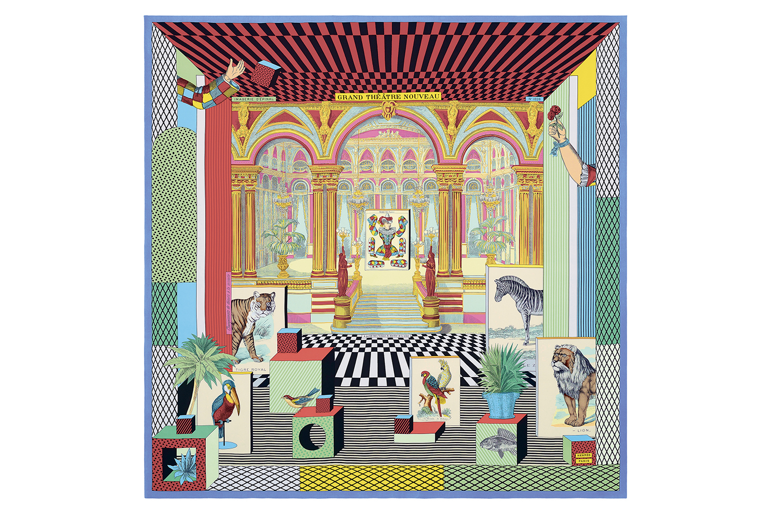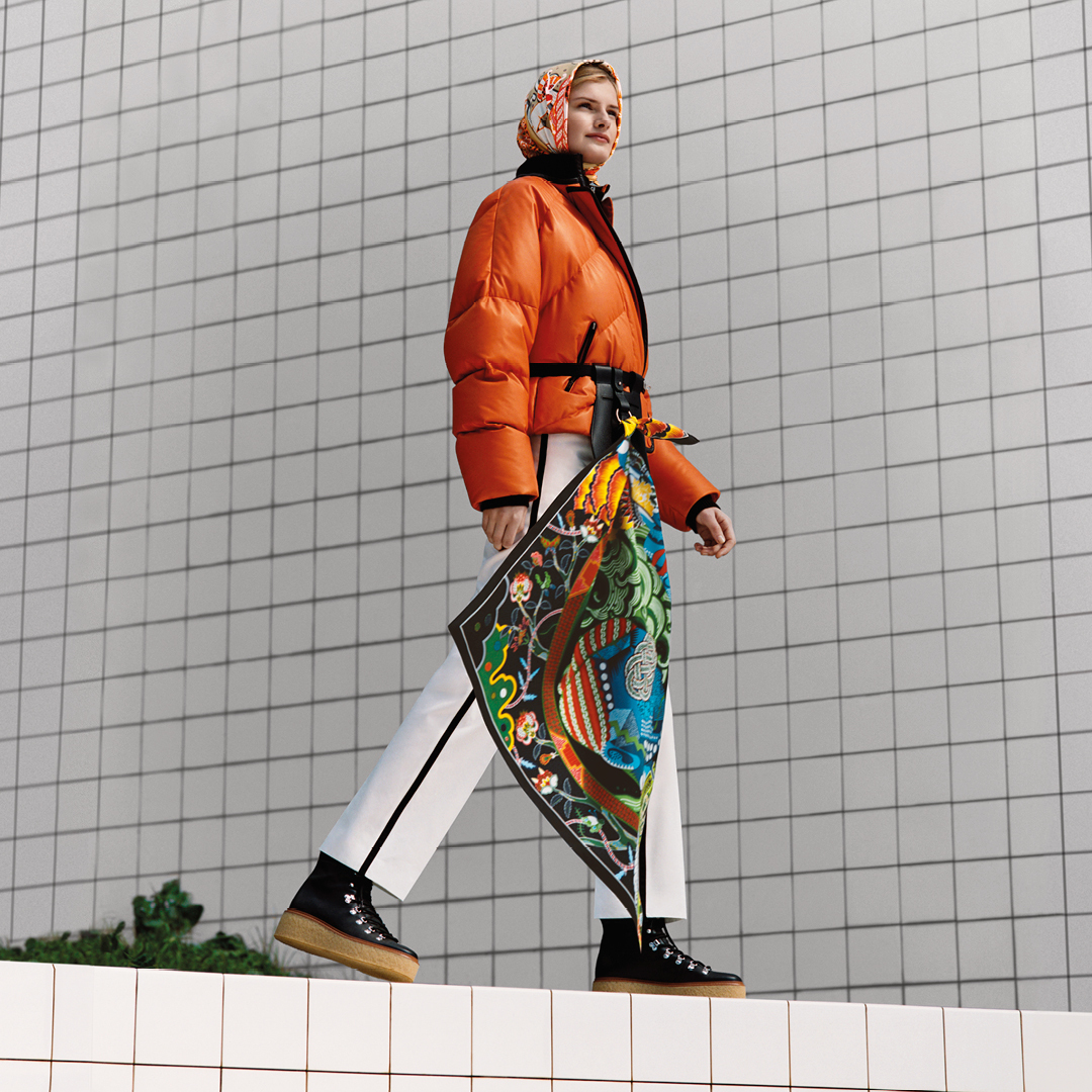 Объединяющая все миры Hermes тема нынешнего года – «Одиссея» – и вовсе не знает границ артистического путешествия, потому на пространстве платков можно увидеть и архитектурную перспективу античного театра с элементами сюрреализма, и вольный сюжет на тему британского five’o’clock и верховой езды, и зашифрованное в орнаменте слово Eleftheria, что в переводе с греческого означает «свобода», творческого самовыражения в том числе.