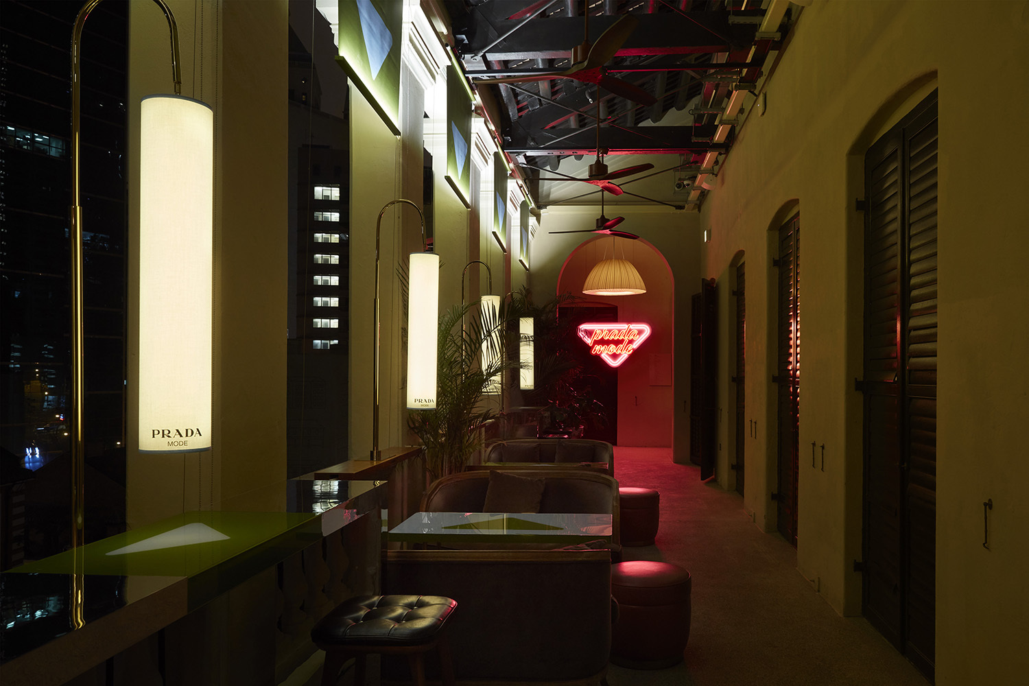 Стартовала эта культурная платформа бренда Prada в декабре 2018 года на выставке Art Basel в Майами, а затем начала свое путешествие по миру. В марте 2019-го проект Prada Mode побывал в Гонконге, в октябре того же года клуб разместился на ярмарке современного искусства Frieze в Лондоне. Затем в декабре 2019 года всего пару дней работал в интерьерах Belle Epoque легендарного ресторана Maxim's в Париже, а следом отправился в Шанхай, где логичным образом проходил в пространстве Prada Rong Zhai.