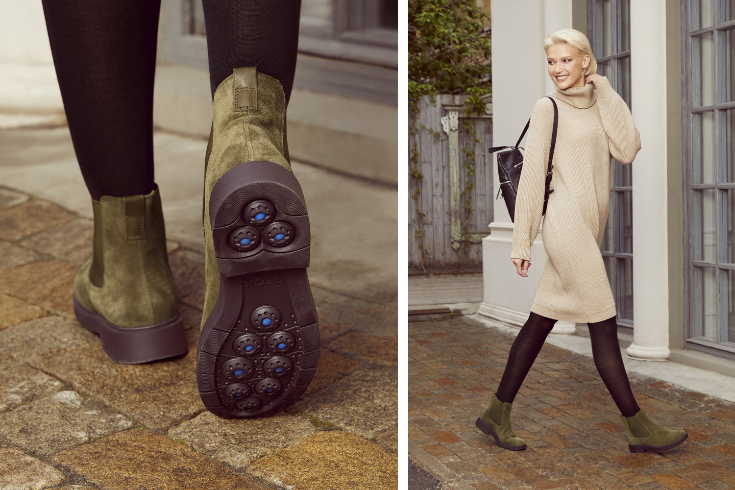 В коллекции Geox осень-зима 2022/23 линию обуви SphericaTM пополнили кроссовки в новых цветах, а также женские лоферы и челси – на них технология протестирована впервые.