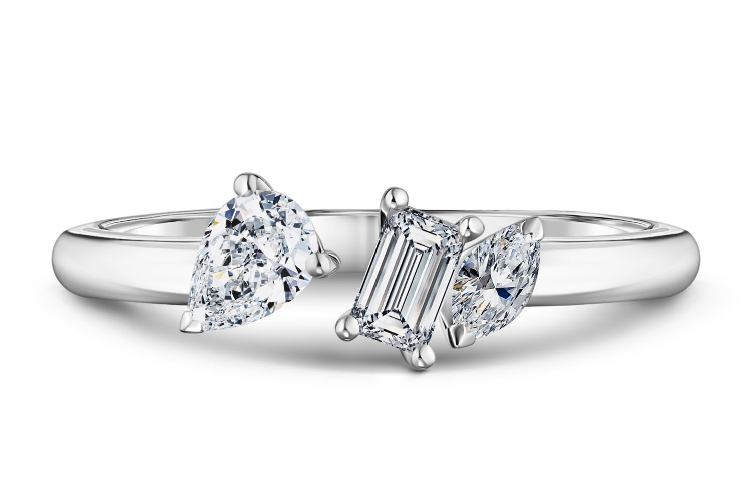 Коллекция открывается лаконичными кольцами-солитерами и продолжается асимметричной динамикой украшений, в которых соединяются бриллианты разных огранок и размеров. Это разомкнутые Toi & Moi и кольца с тремя или даже четырьмя главными драгоценными камнями, заменяющими солитер на его привычном месте.