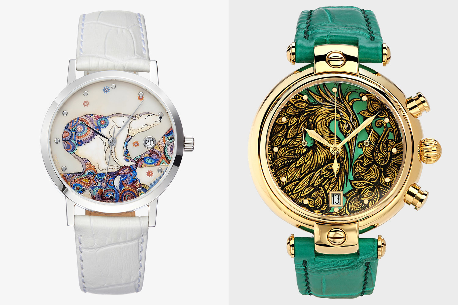 Именно Нестеровой принадлежит идея использовать старинную технологию лаковой живописи в наручных часах: изображение становится функциональным и защищено стеклом. Но не менее важно, что исторический народный промысел обретает новую жизнь и новые возможности.