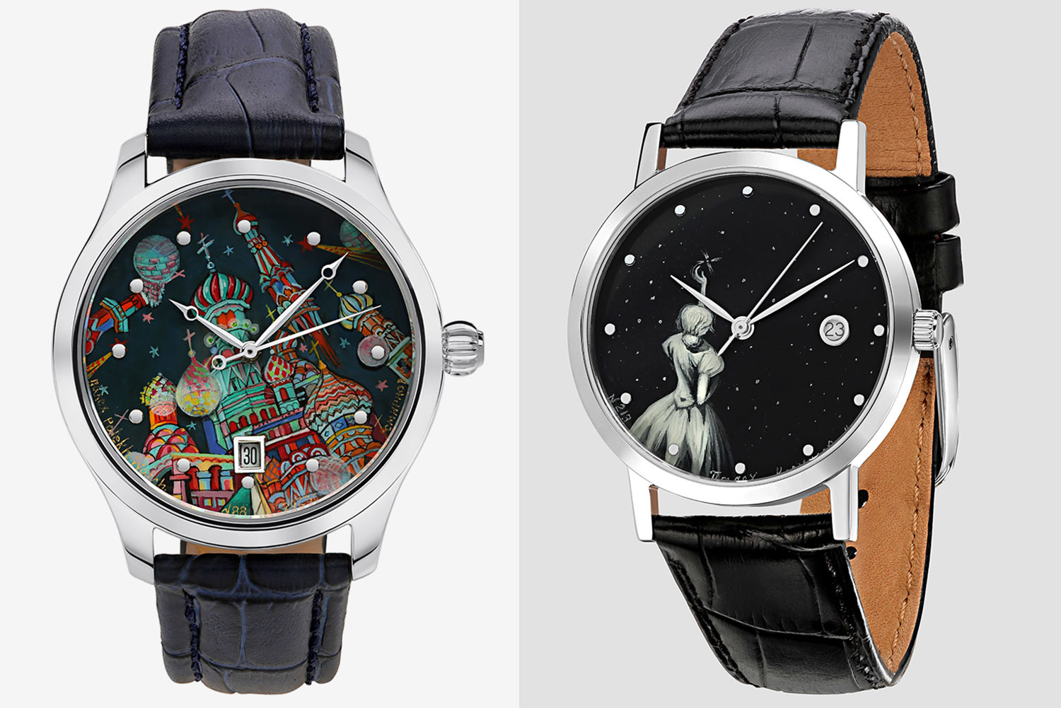 Уже более трех лет Palekh Watch создает уникальные часы с авторской росписью в традиционной технике. Это так называемое мелочное письмо, в котором детально прорисовано все – от ресниц до снежинок.