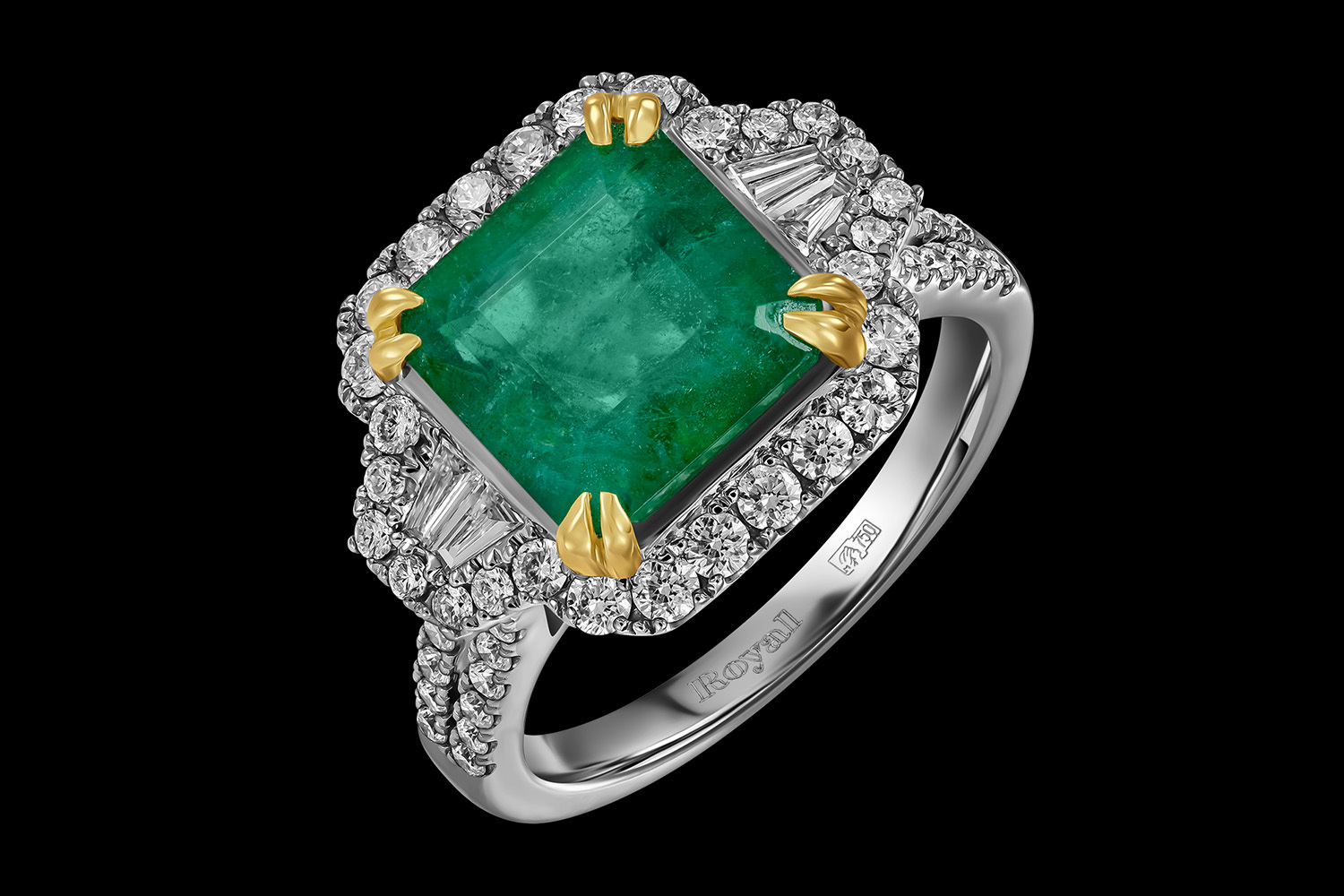 В «королевских» украшениях – это, как правило, кольца – дизайнеры марки делают ставку на классический дизайн и высокое качество драгоценных самоцветов: изумрудов, рубинов, сапфиров, танзанитов. Центральный элемент композиции Royal богато обрамлен бриллиантами разных огранок, инкрустирована бриллиантами и шинка кольца.
