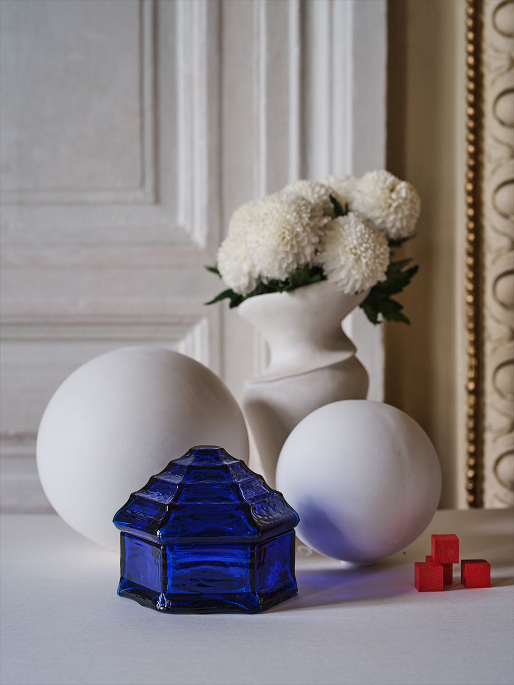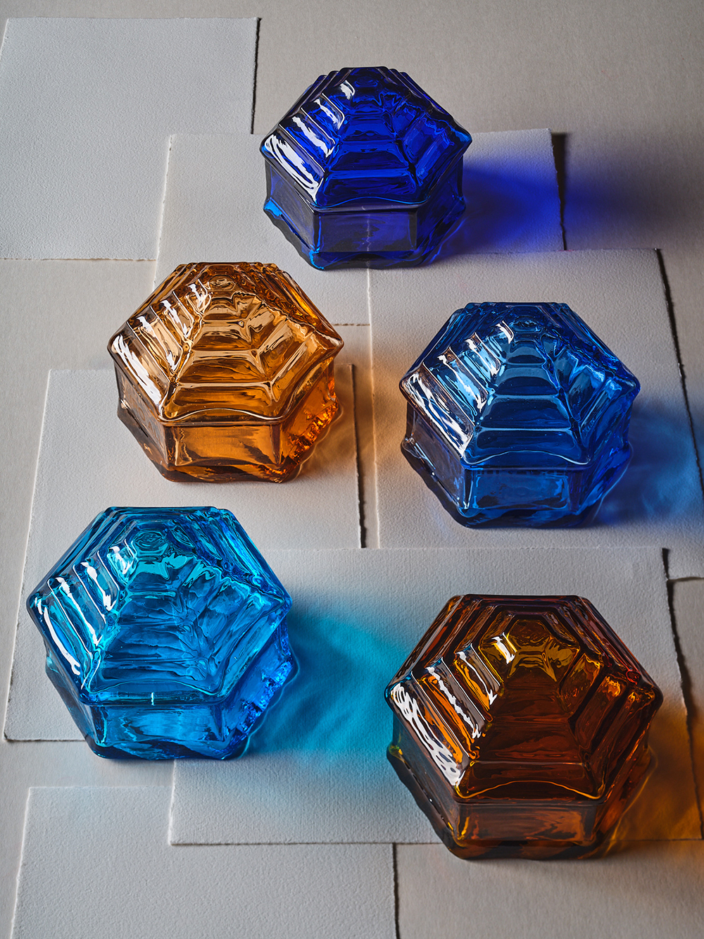 В серии Buro All использованы кирпичи классической формы № 7 в виде граненой фигуры (каждый дизайн фальконье получал порядковый номер, чтобы в них было проще ориентироваться). Шкатулки сделаны традиционным методом выдувания из цветного стекла. Дизайнеры разработали пять цветов: карамельный, синий, голубой, бирюзовый и желтый. Коллекция выпускается на собственном производстве Buro All, и в дальнейшем Елена хочет расширить линейку, сделав серию шкатулок из выдувного хрусталя.